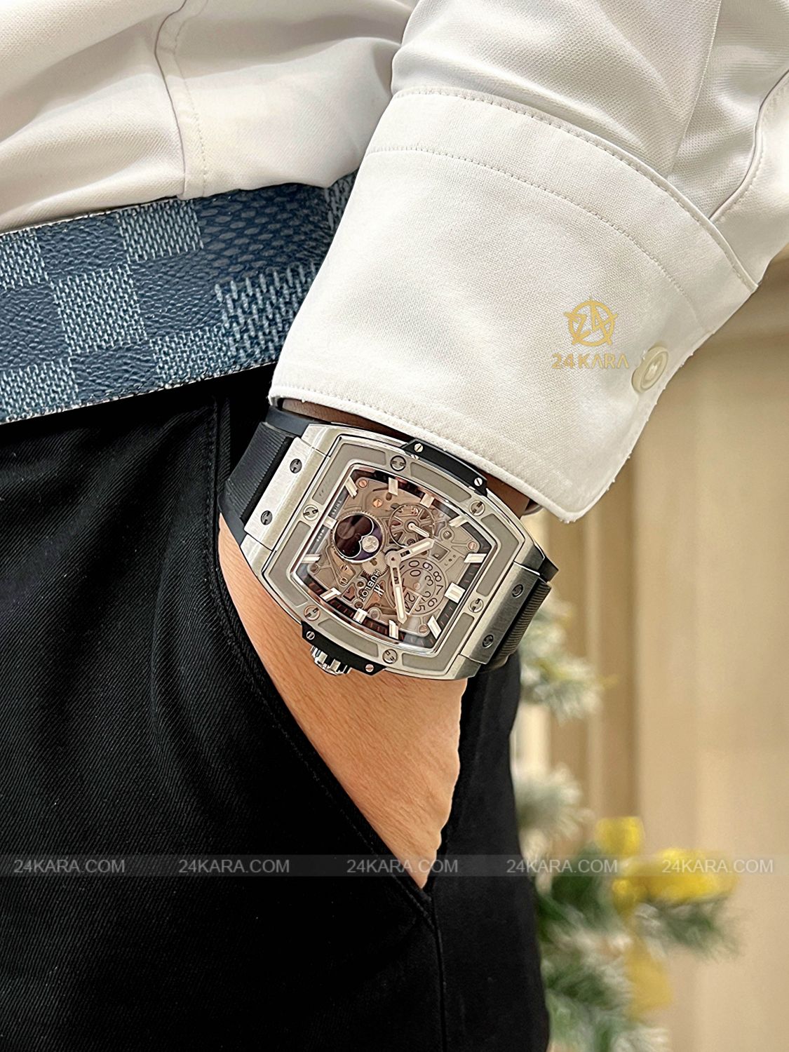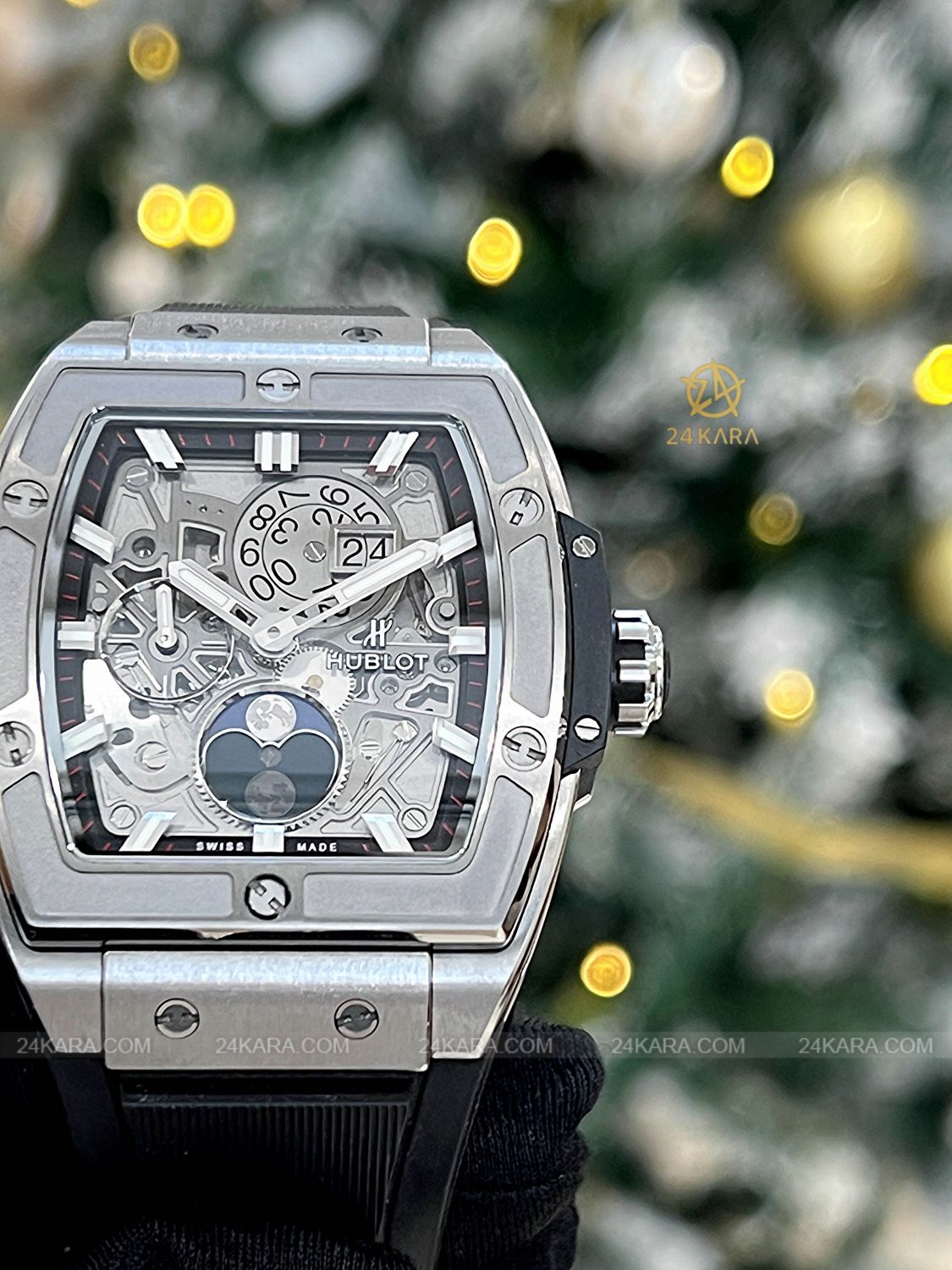 Loại máy Bộ máy tự động HUB1770 tần số dao động 28800 vph, 27 chân kính, trữ cót 50 giờ.