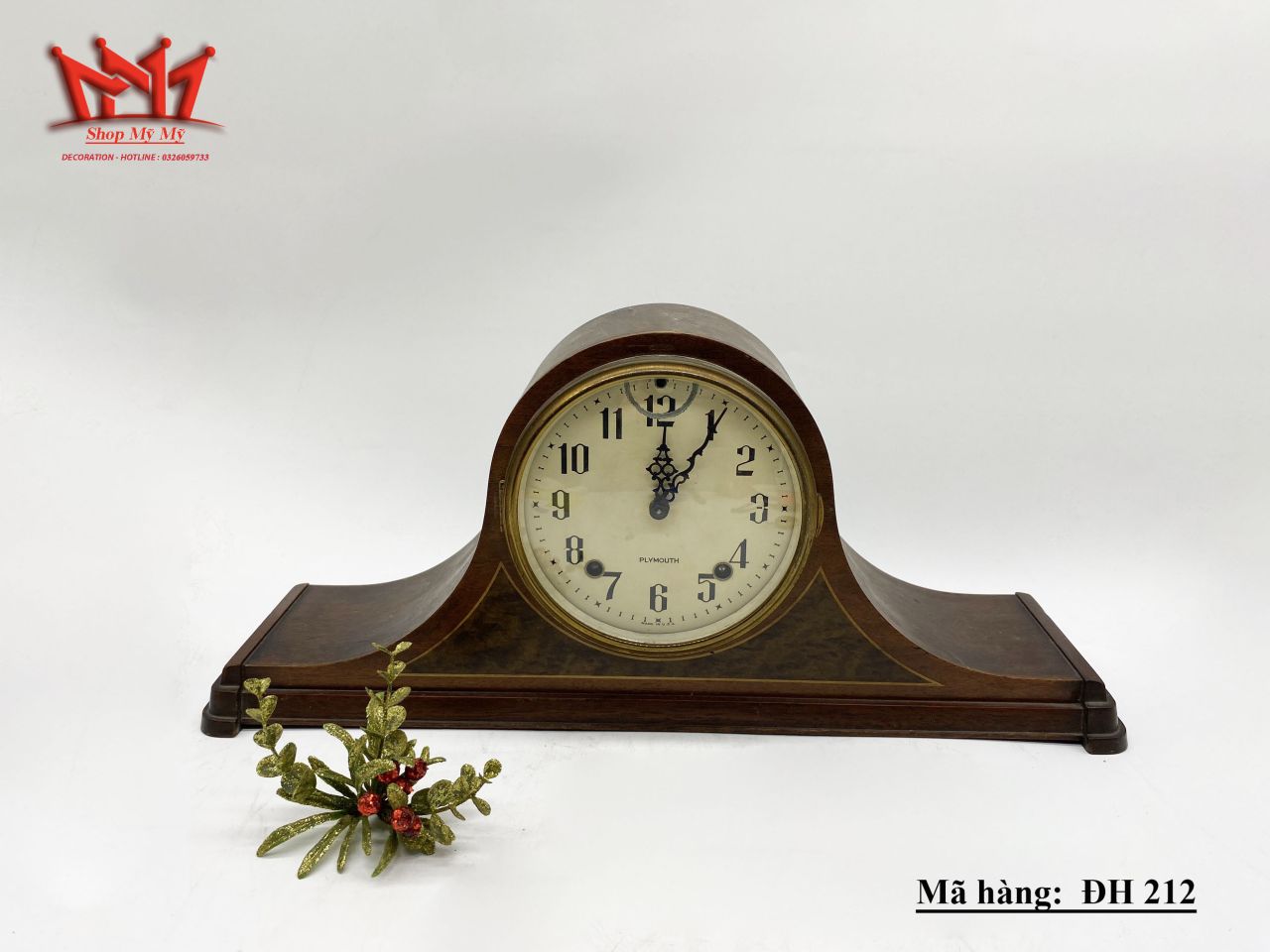 Đồng hồ lên dây 2 lỗ , 2 gông của Mỹ kích thước : cao 22,5cm, ngang 46cm, sâu 11,5cm Tên thương hiệu : PLYMOUTH Giá : 3.490.000 đ SDT liên hệ : 0326059733