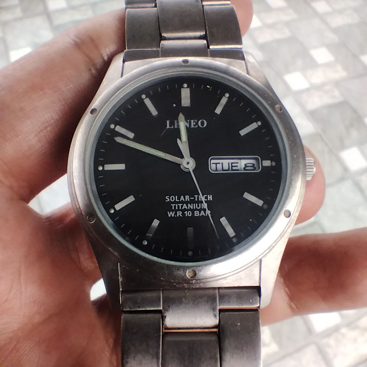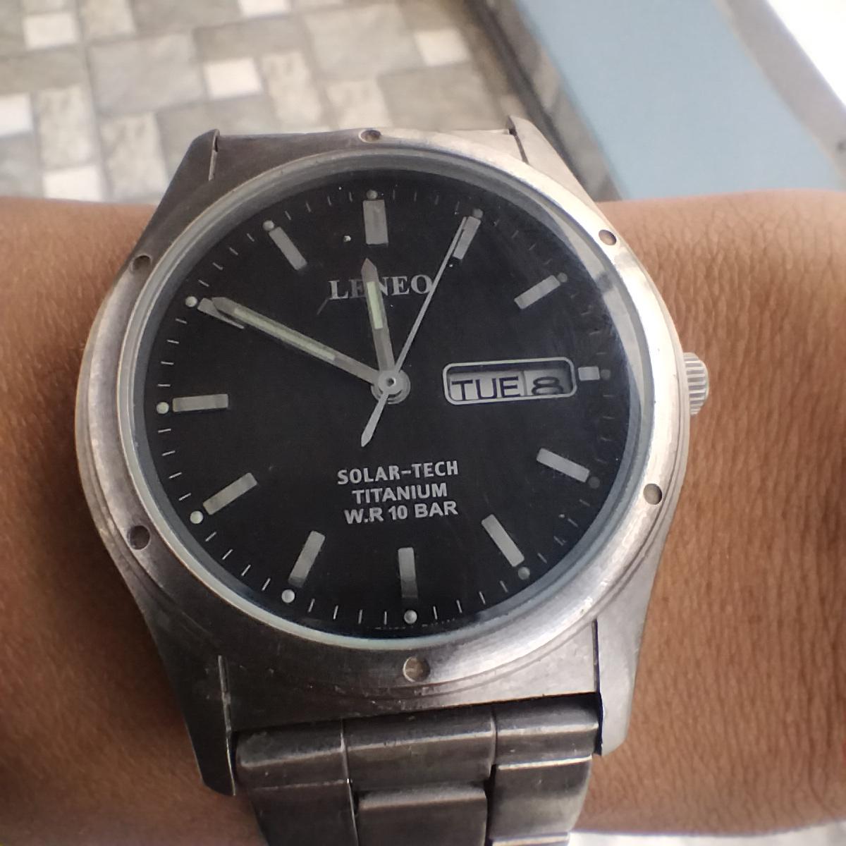 Đồng hồ Leneo năng lượng mặt trời, full Titanium, size 36mm không kể núm, 2 lịch, đáy xoáy chống nước, coc số La Mã.
