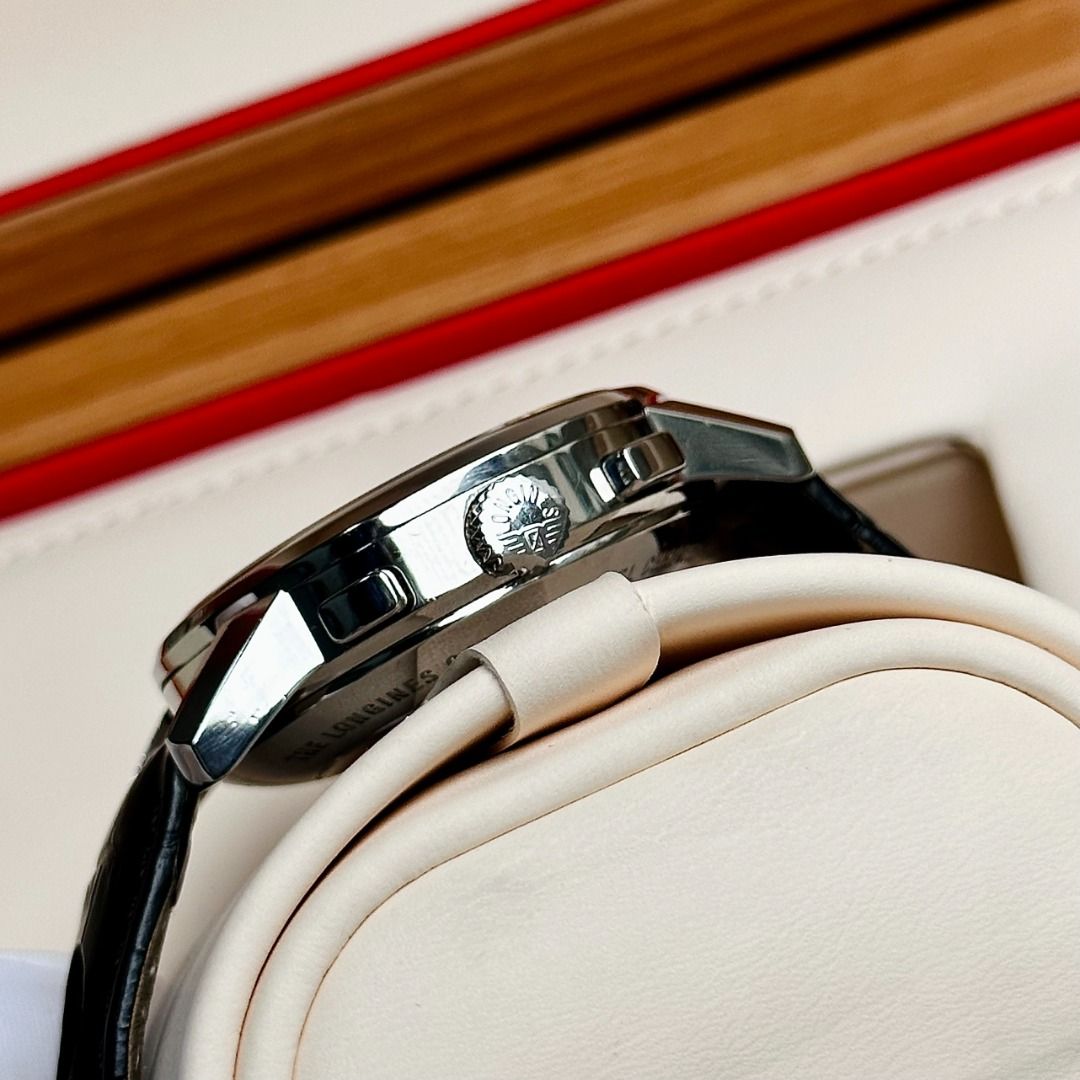 - Máy automatic L688.2 giữ giờ 54 tiếng, chạy rất chính xác, cùng hệ thống bấm giờ thể thao chronograph với column-wheel.
