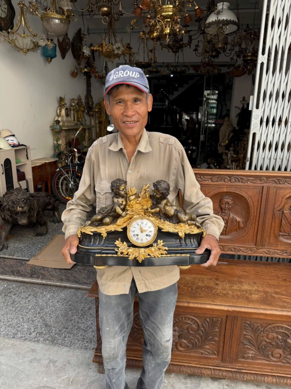 🕰 Đồng hồ mantel Pháp cổ – tượng thiên thần mạ vàng