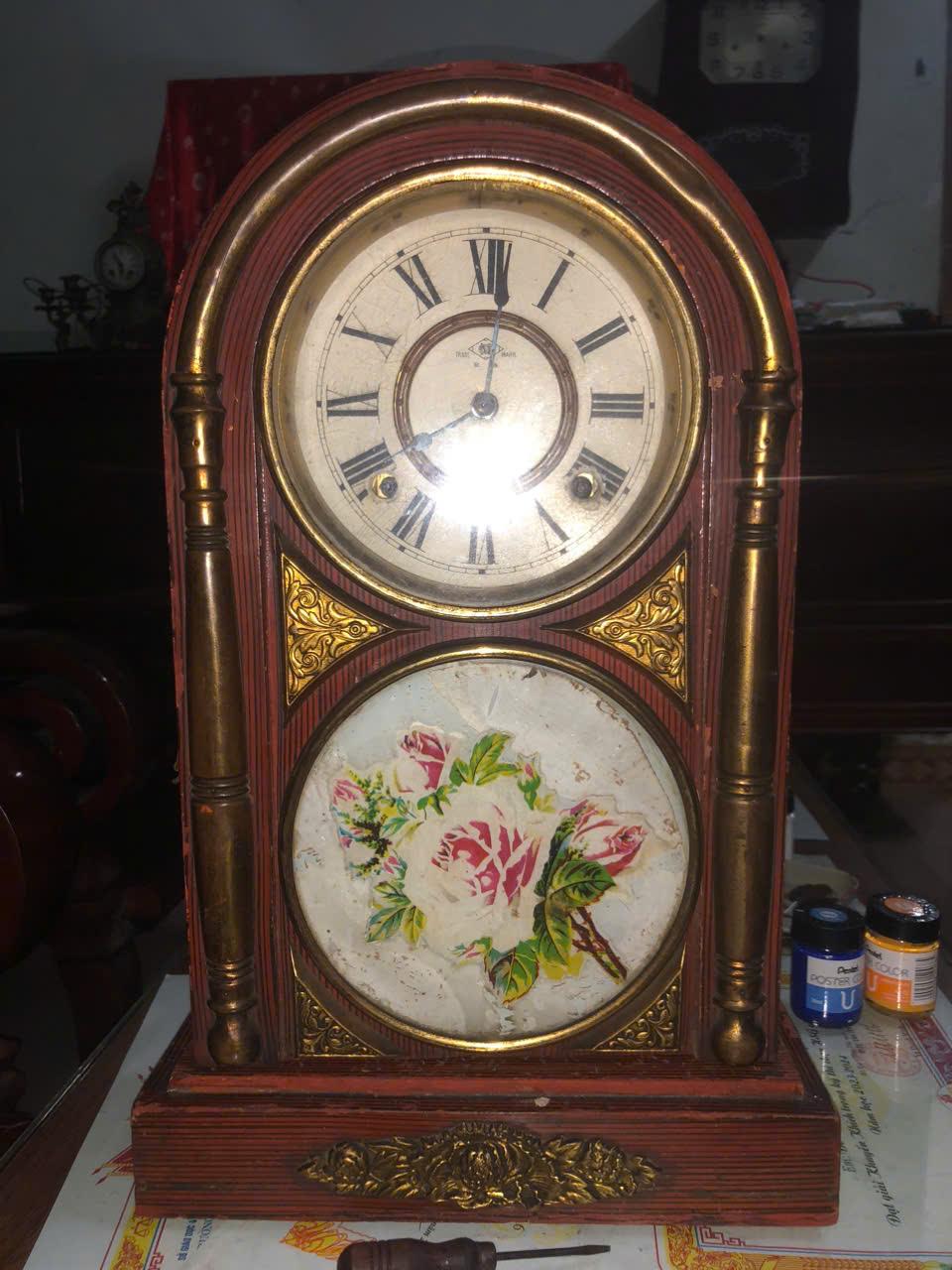 đh size to 44 x 28 cm full hoạ tiết đồng + kết hợp hoa văn gốm câb đối giá trị đh hơn 120 năm tuổi sx theo tiêu chuẩn đh mỹ ansonia , chuông mổi 60 phút bằng gong vòng ngân sâu