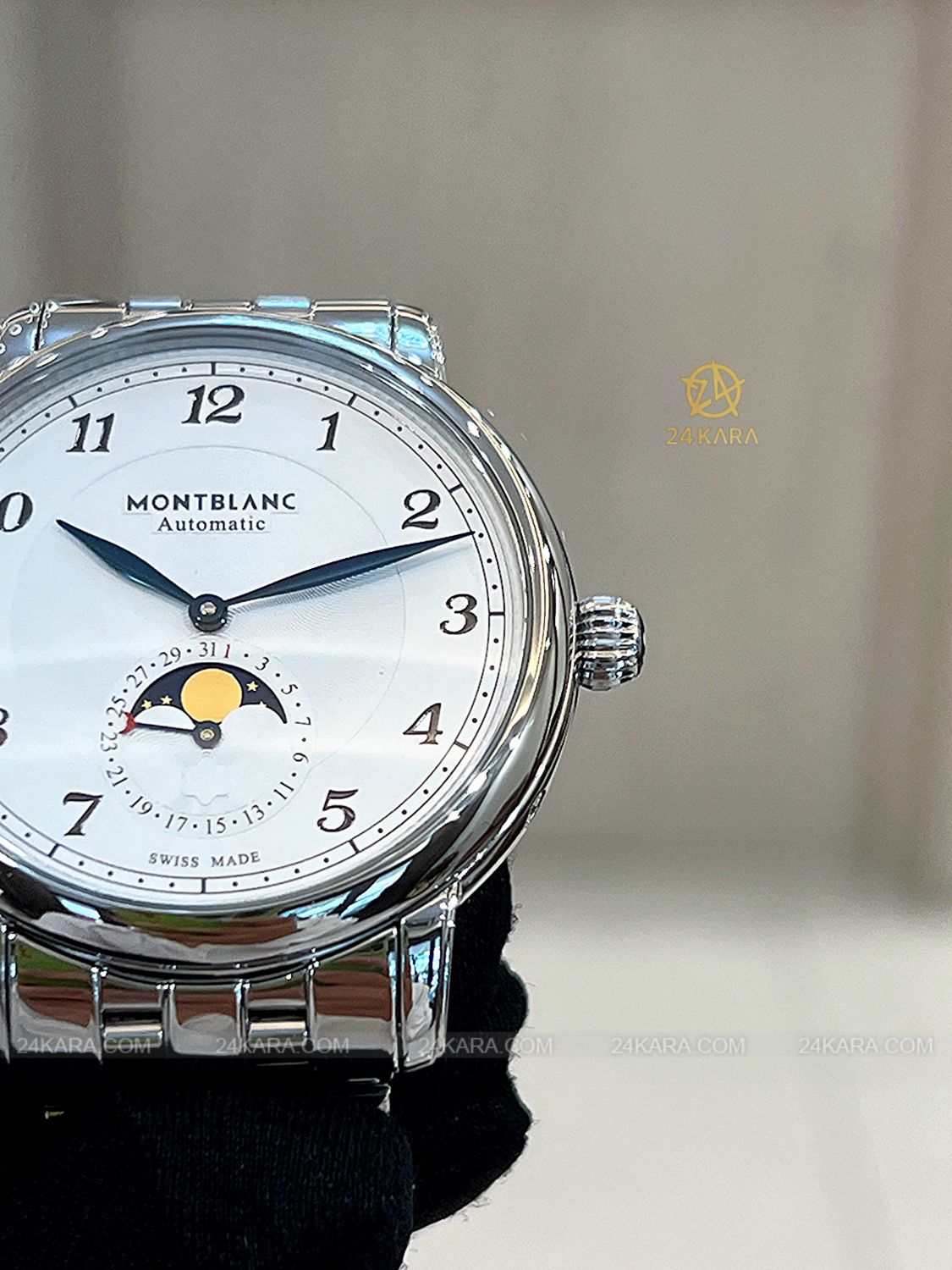 Đồng hồ Montblanc Star Legacy Moonphase MB117326 là mẫu đồng hồ đến từ thương hiệu Montblanc, có kích cỡ mặt số 42 mm dành cho các quý ông lịch lãm. Chiếc đồng hồ sử dụng bộ máy tự động có xuất xứ Thụy Sĩ, đồng hồ có thể vận hành trong thời gian dài, có độ bền và giá trị sưu tầm cao. Chất liệu vỏ được chế tác từ thép có độ bền cao và vẻ ngoài sang trọng. Đồng hồ được trang bị dây kim loại bền bỉ, lịch lãm. Chất liệu kính làm từ Sapphire đem lại khả năng chống xước, chống lóa tuyệt vời.