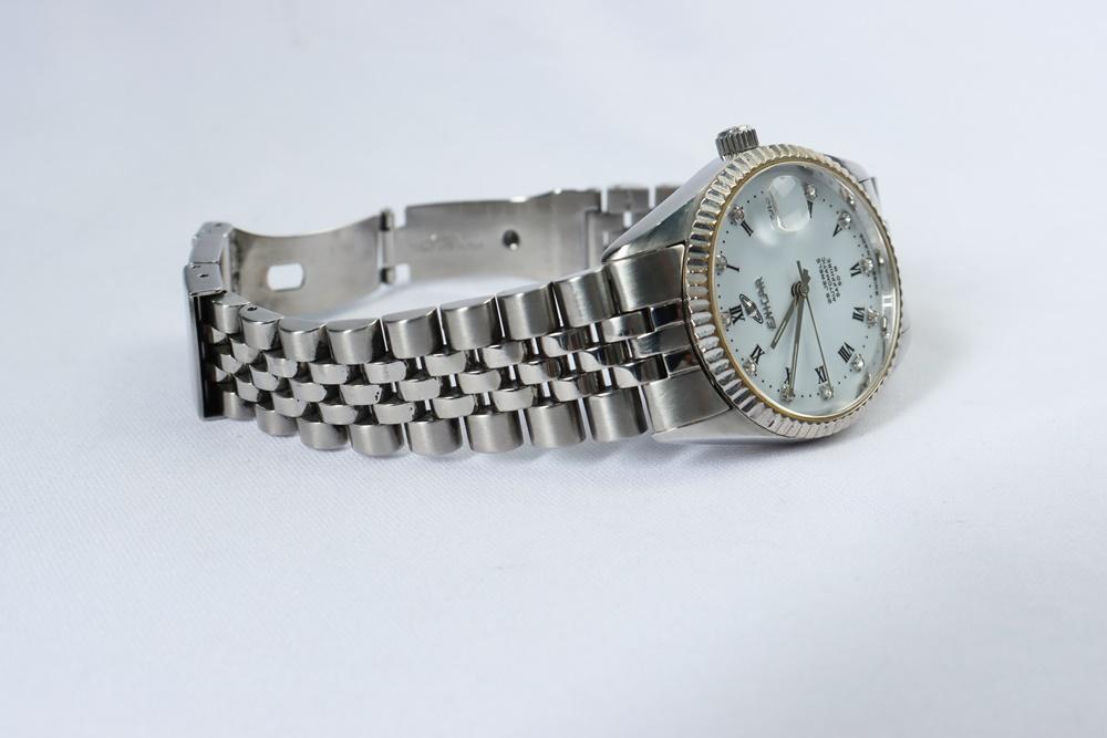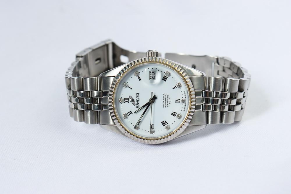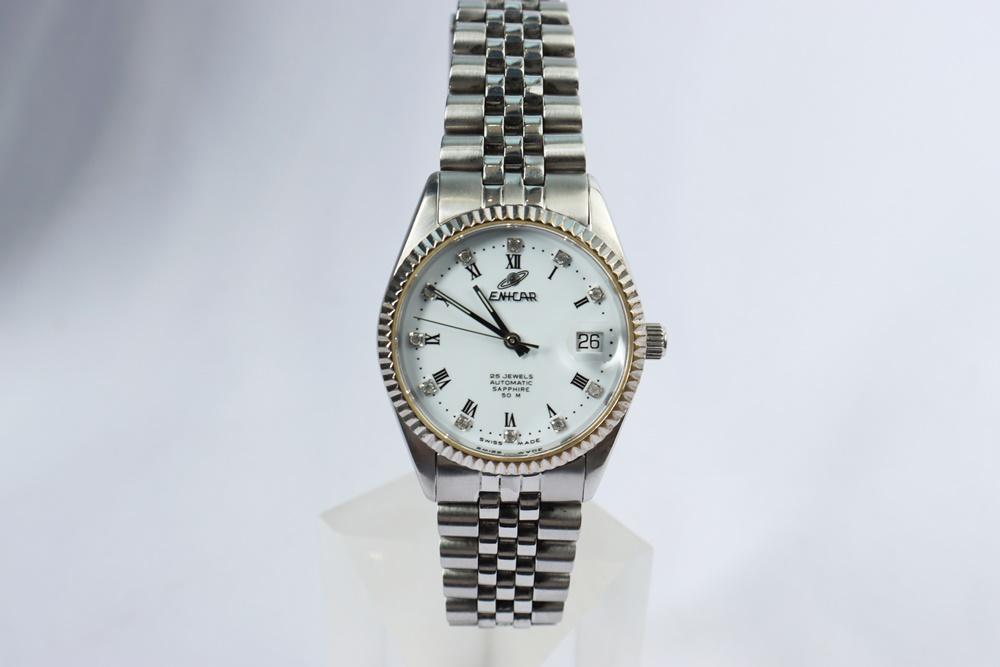 Đồng Hồ Nam ENICAR Automatic, mặt tròn dây thép, Niềng khía - Cọc Số đính Kim Cương