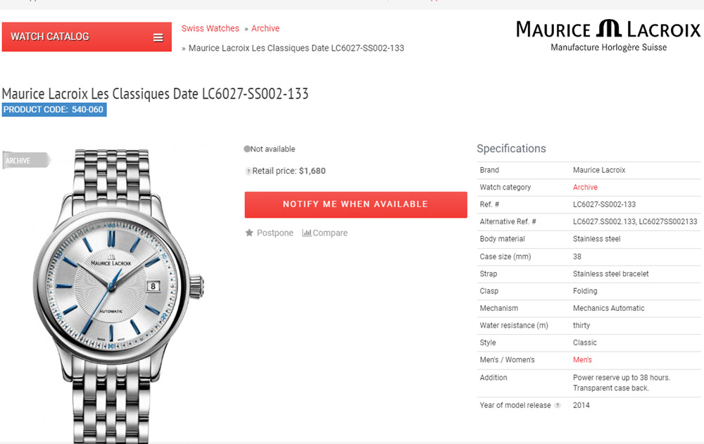 Dòng SP : Maurice Lacroix Les Classiques LC6027-SS002-133