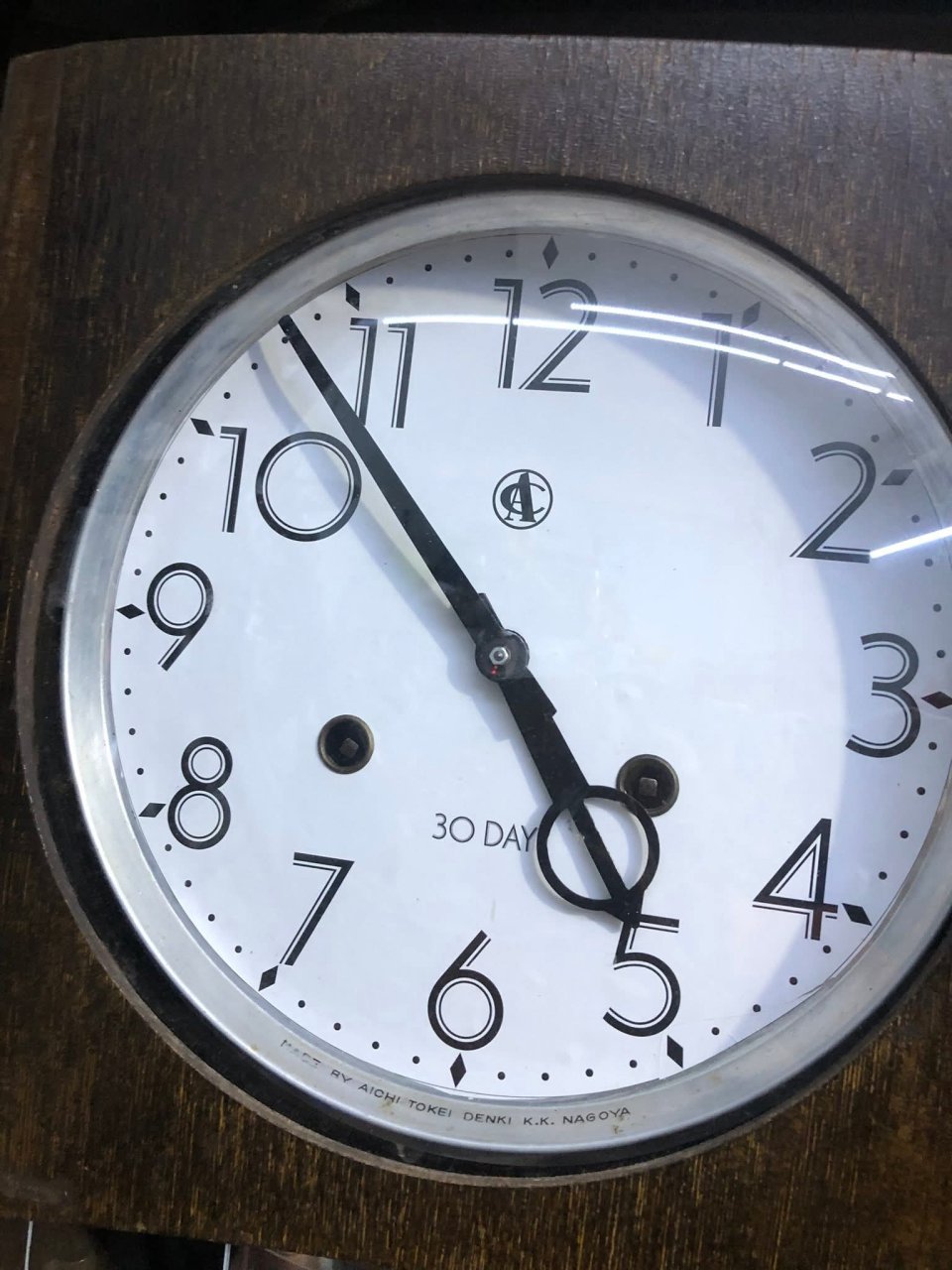 Đồng hồ nhật Aichi cót 30 ngày . KT 39x26cm. Điểm chuông 30'và60',2búa 2 gông đồng bạch .