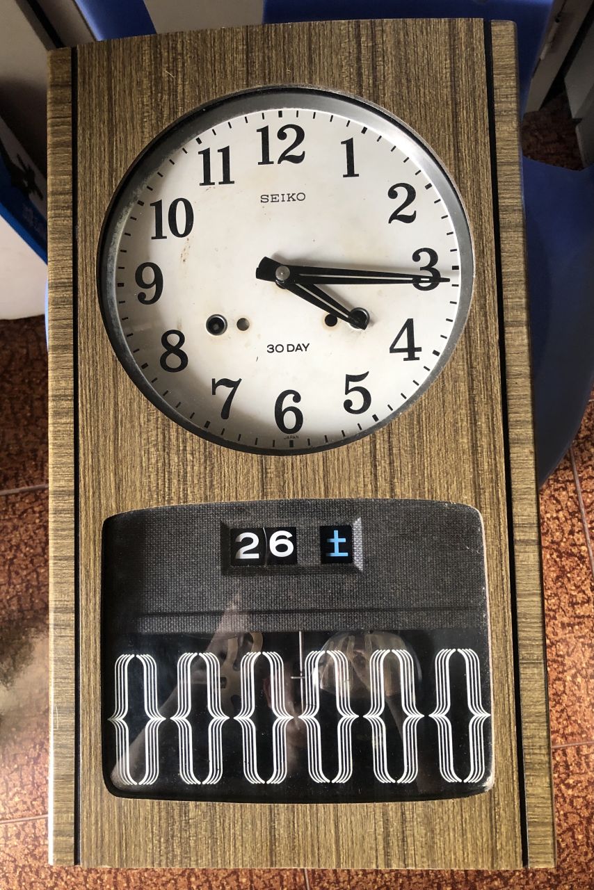 Japan Cơ cót tháng, Zin nguyên bản sưu tầm 1950. Cót 30 ngày, 30p đổ chuông, máy zin chưa sửa, giờ lịch đang chạy chuẩn chỉ.
