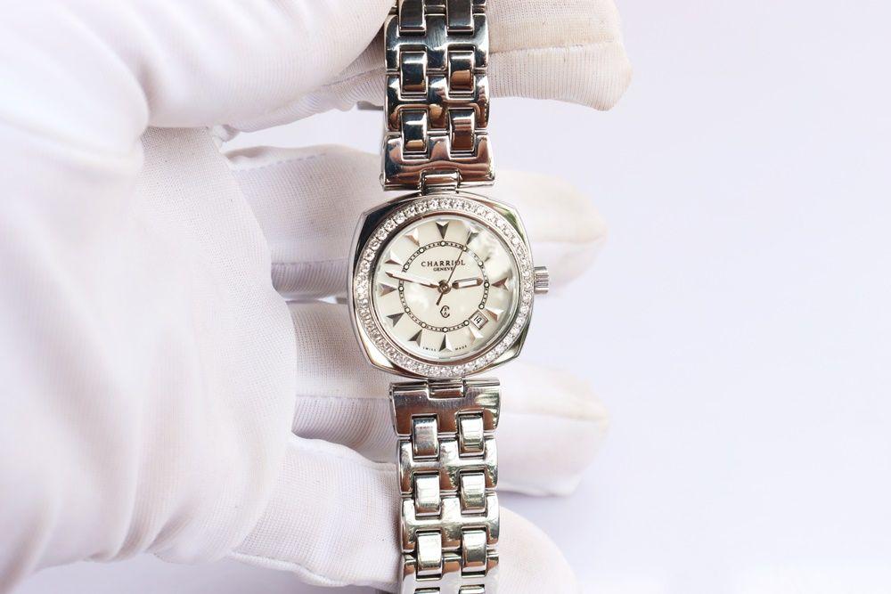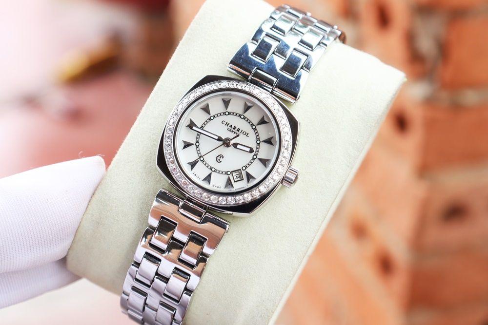 Đồng Hồ Nữ - Charriol Mặt xà cừ - Niềng Full Kim Cương thiên nhiên - Size 27mm