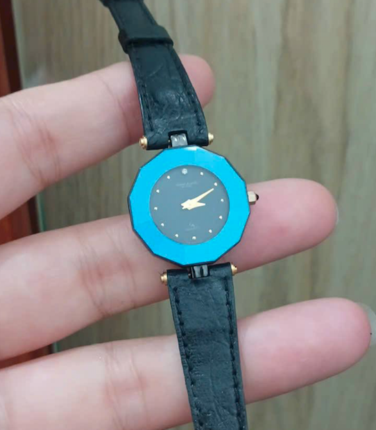 Đồng hồ nữ Gianni Accardi, đính 1 viên KC tấm, viền vát xanh dương đẹp sang
