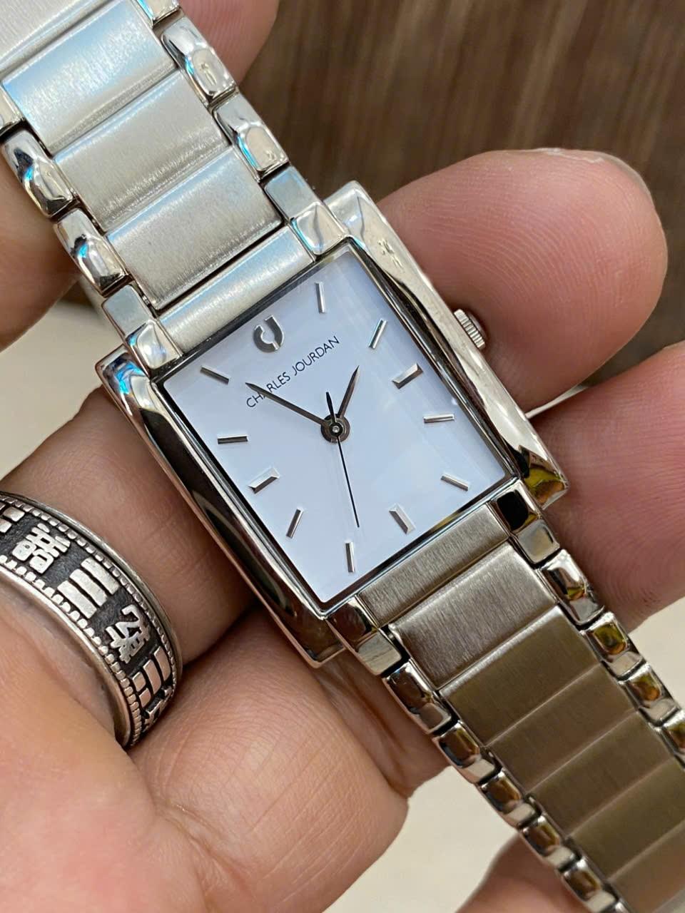 Đồng hồ Nữ thụy sỹ Charles Jourdan, form tank, vỏ thép sáng bóng, mới 99%
