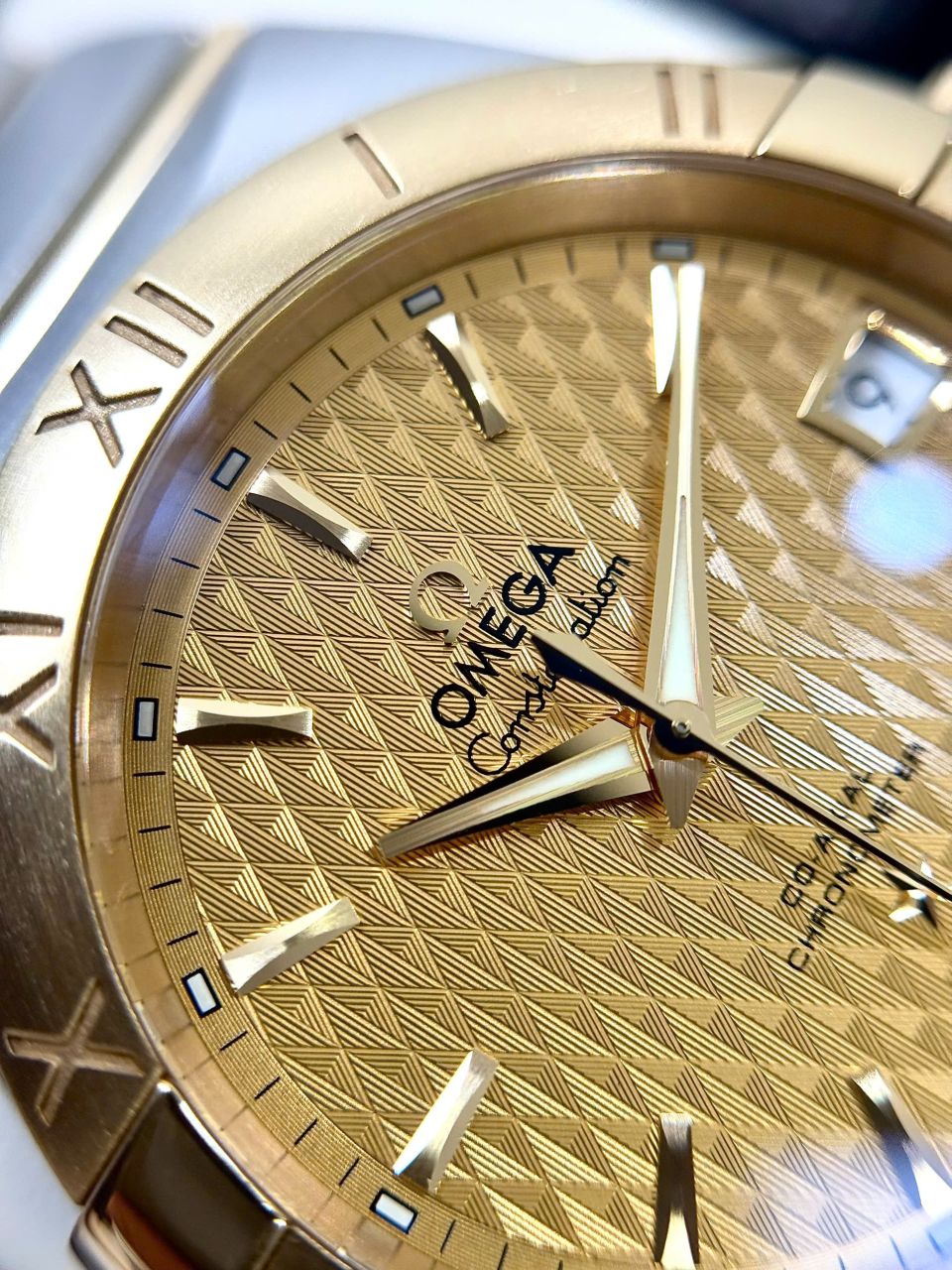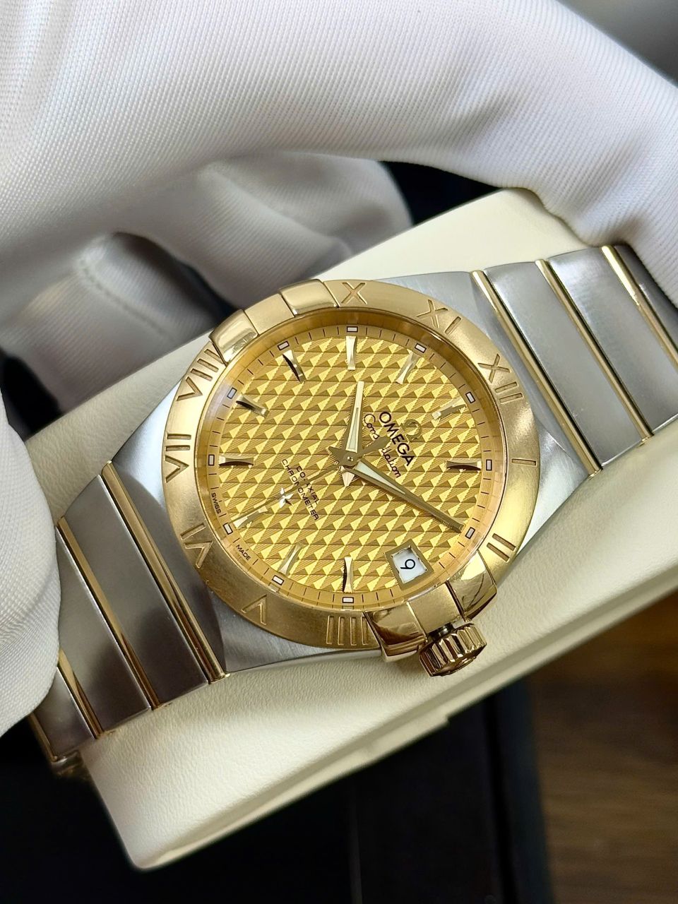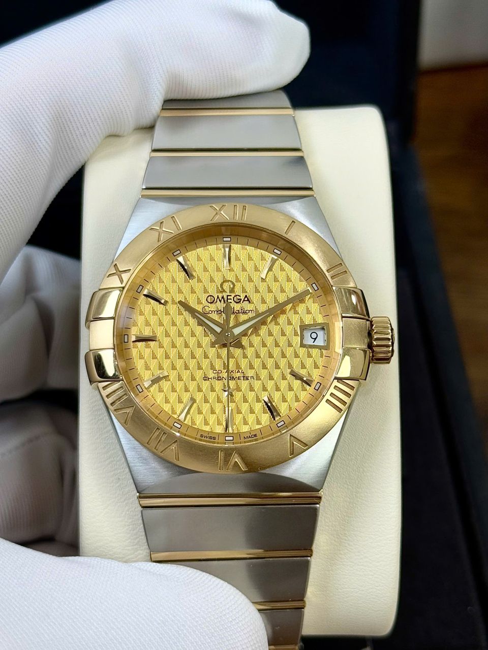 Đồng hồ Omega Constellation 123.20.38.21.08.002 Thiết kế size mặt 38mm cho ae tay vừa và to Benzen và các đốt dây vàng 18k Mặt kính saphire nguyên khối phủ ar chống lóa 2 mặt Dial hoàn thiện vân caro siêu đẹp Máy 8500 tích cót 60h với 2 ổ tích cót đạt chuẩn chronometers Tình trạng qua sử dụng còn đẹp zin all đầy đủ hộp sổ tag, 2 thẻ (thiếu 1 thẻ chronometers) E giao lưu ae hơn 90tr chút xíu