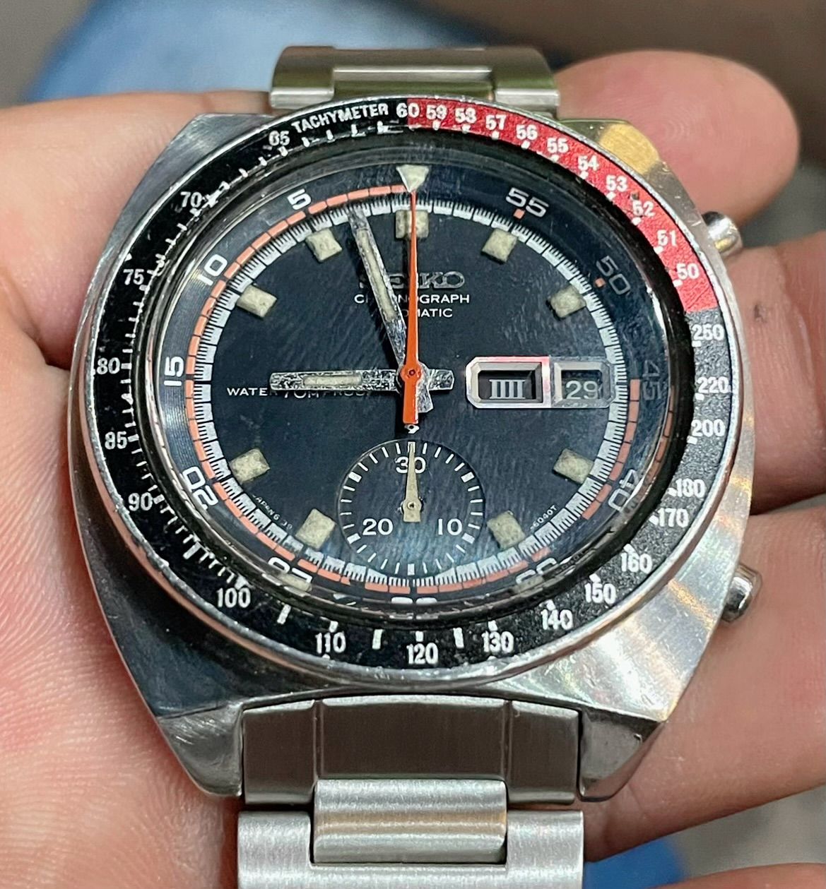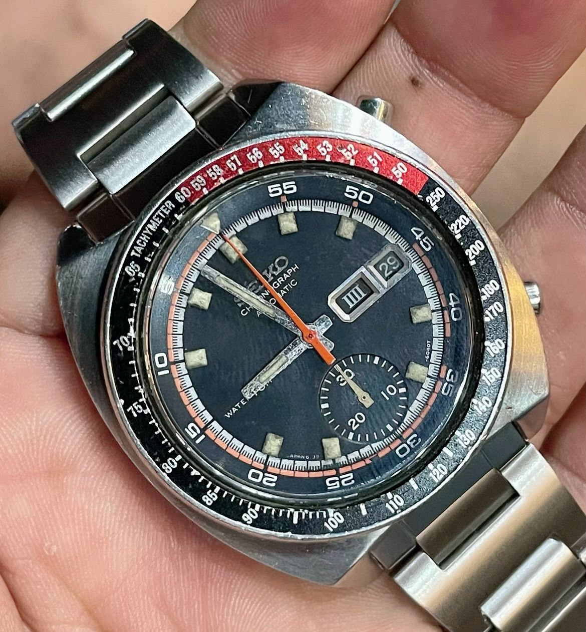 Đồng hồ SEIKO Chronograph Automatic nguyên zin. Chức năng bấm giờ thể thao hoạt động hoàn hảo. đồng hồ liền lạc đáng để sưu tầm.