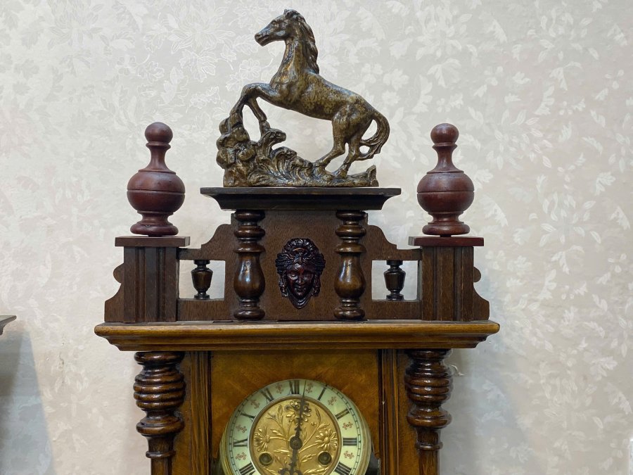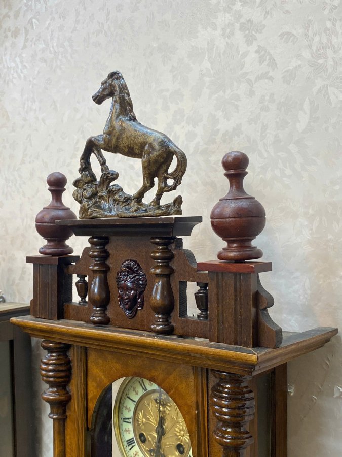 *.* Thùng gỗ dáng song tiện phối các hoa văn , cùng chú ngựa trên đỉnh đồng hồ tạo nên vẻ đẹp sang trọng , uy nghi ..