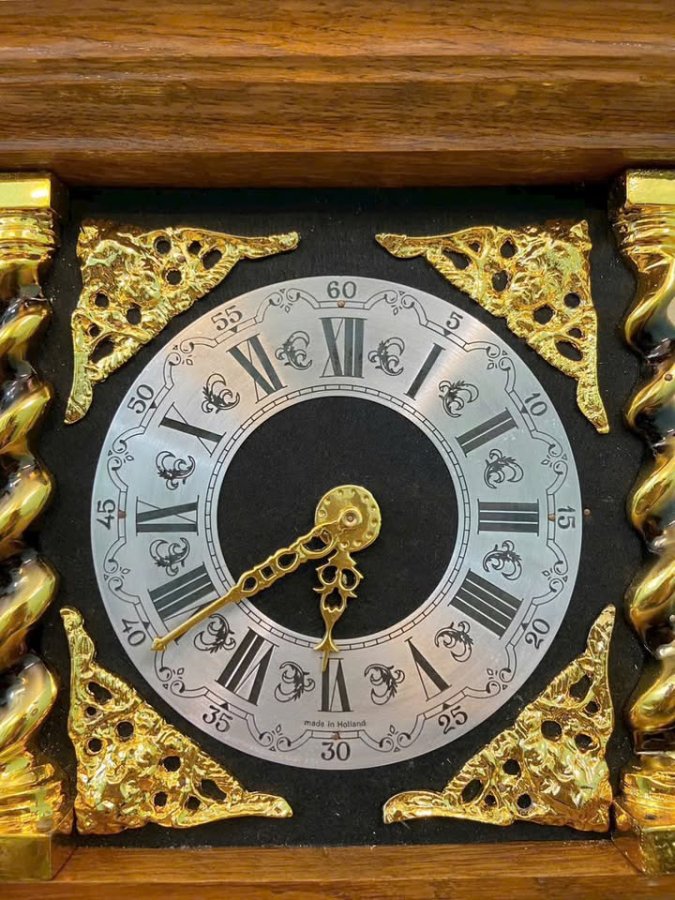 💃 Ngoại thất được làm bằng chất liệu gỗ Sồi và tông màu Maple làm nổi bật những hoa văn đồng nguyên khối. Những biểu tượng đặc trưng của dòng tạ lê là vị thần Atlas, Trọng tâm mặt số nổi bật được trang trí bằng 2 cột xoắn đặc trưng.