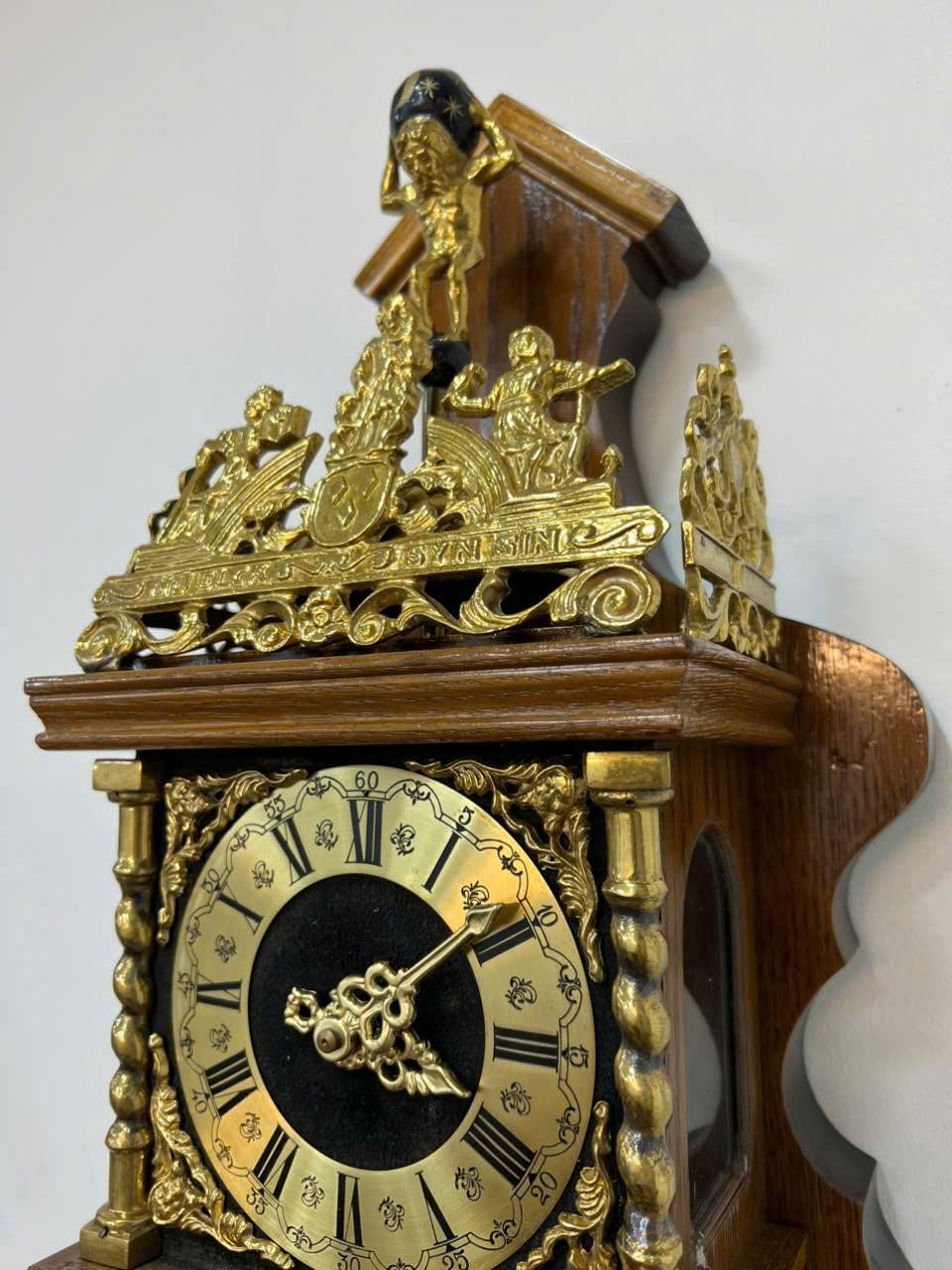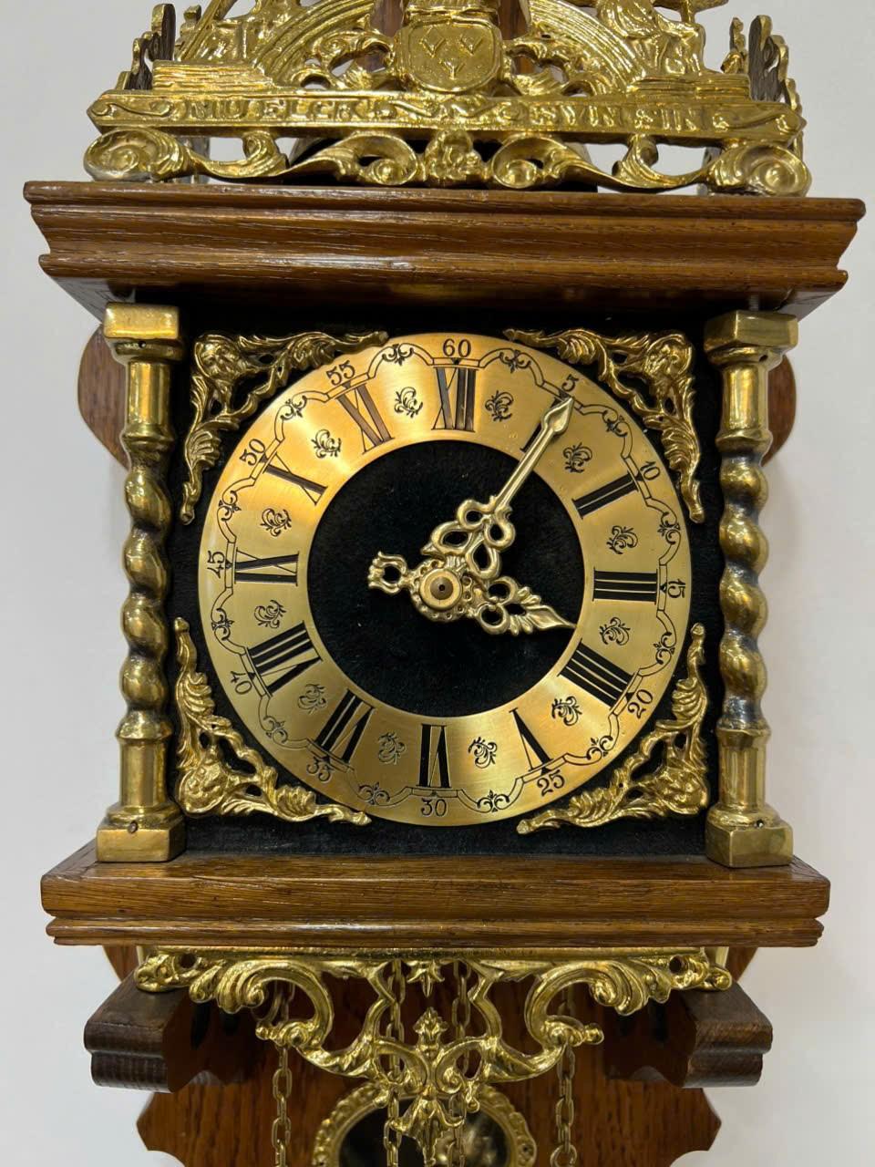 +⃝ Máy : Chính hãng WARMINK 2 tạ xích, hoạt động quả lắc, chạy tuần lên dây. Sở hữu 1 chuông bát 1 búa, 30” phút điểm chuông (âm thanh cổ điển - chất âm vang hoài cổ).