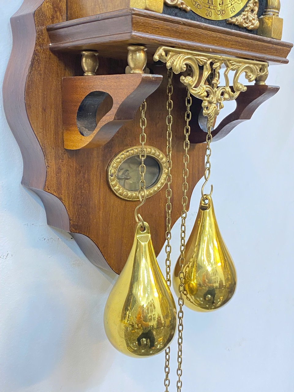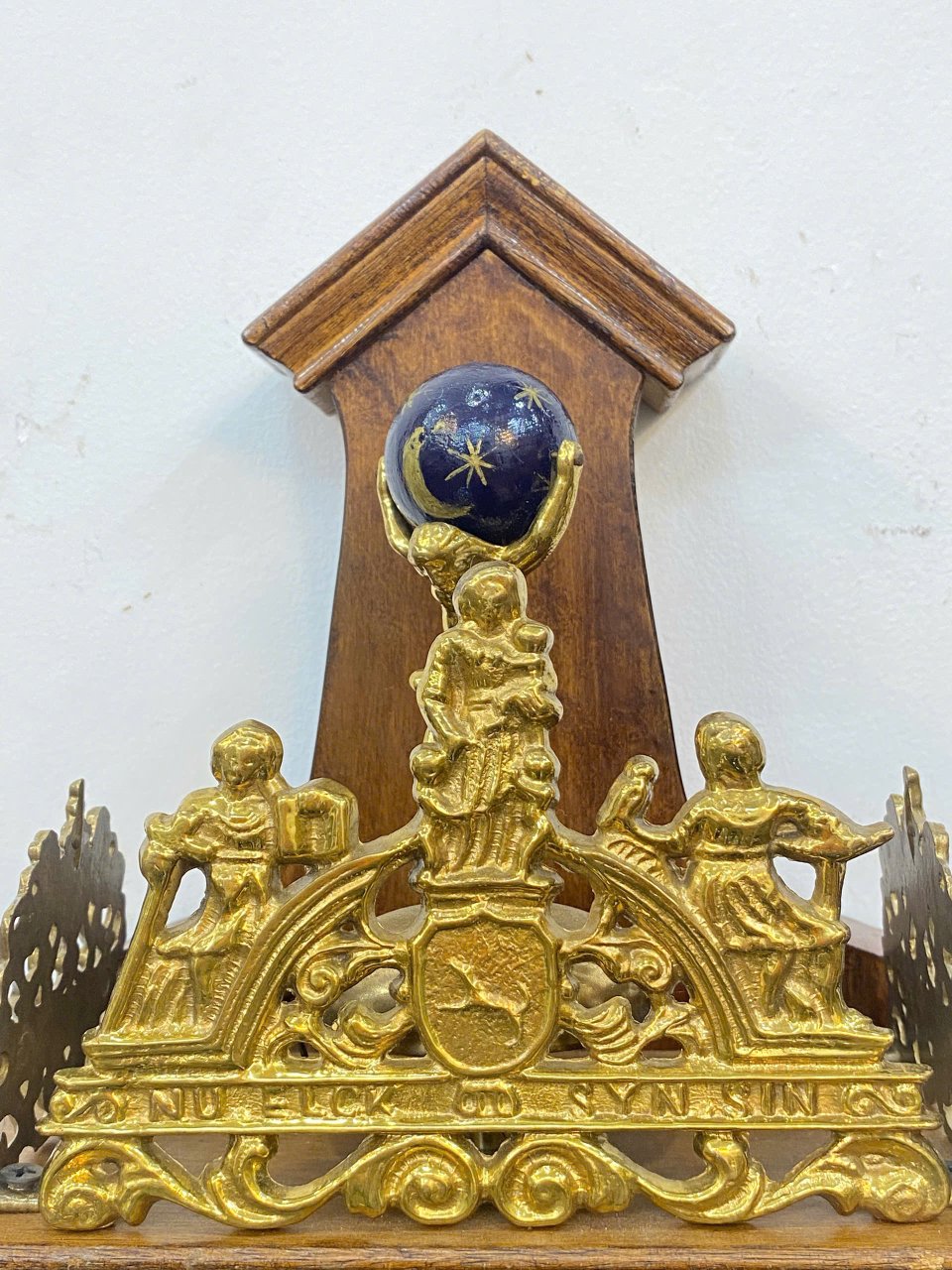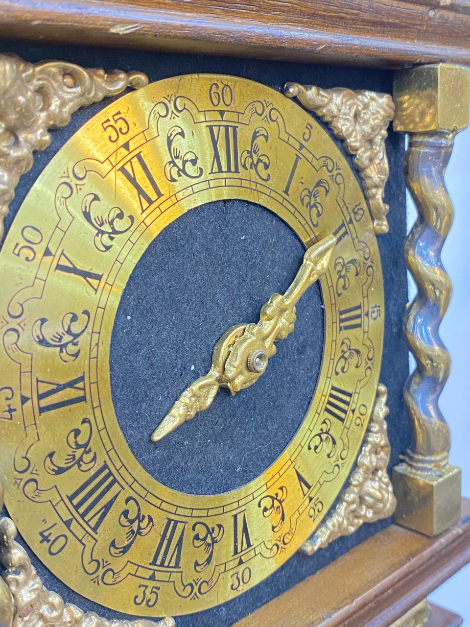🤩 Ngoại thất : gỗ phối các phù, điêu đồng đúc : vị thần Atlanta , hai chú sư tử và các thiên thần rất đẹp , hai bên mặt số là 2 cột xoắn bằng đồng tạo nên sự vững chắc cũng như điểm nhấn sang trọng cho chiếc đồng hồ