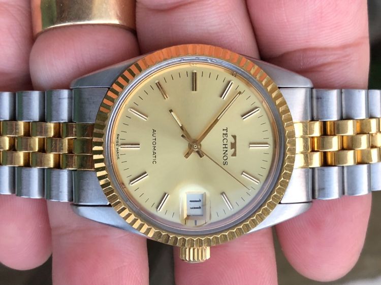 - Máy tự động Technos Zin theo đồng hồ khá chất lượng đang chạy chuẩn chỉ rất mới đẹp long lanh.