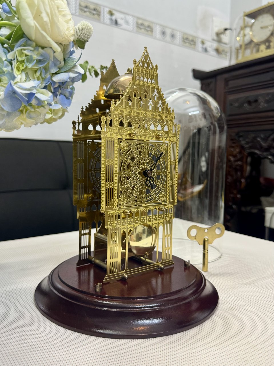 ⚙️ Máy móc chạy được 2 tuần 1 lần lên dây có chuông tháp điểm 1 hồi chuông khi tròn giờ . Máy chuẩn chạy sát giờ sẳn . Chạy bằng con lắc lộ ở gị trí cổng rất đẹp .