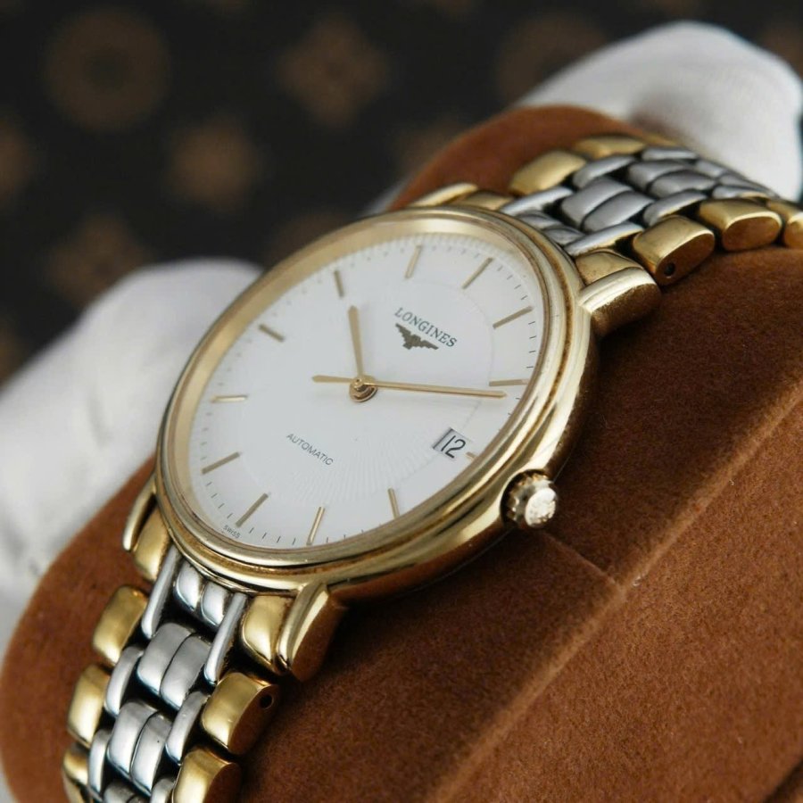 👍Dial: trắng cọc kim vàng với lịch góc 3h thuận tiện