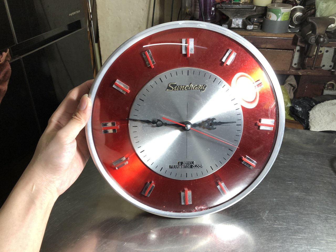 Đồng hồ Sunchang đỏ Nhật máy transistor chạy chuẩn giờ. Thích hợp treo tường công sở hay phòng khách sử dụng.
