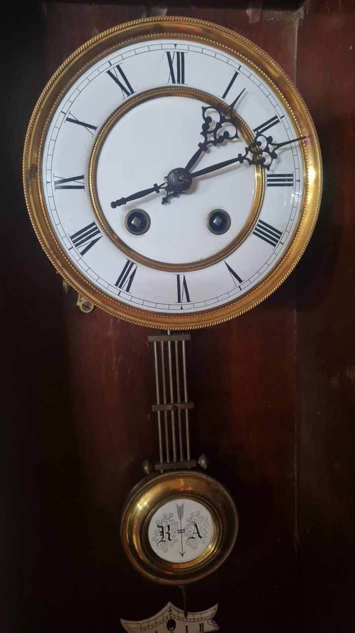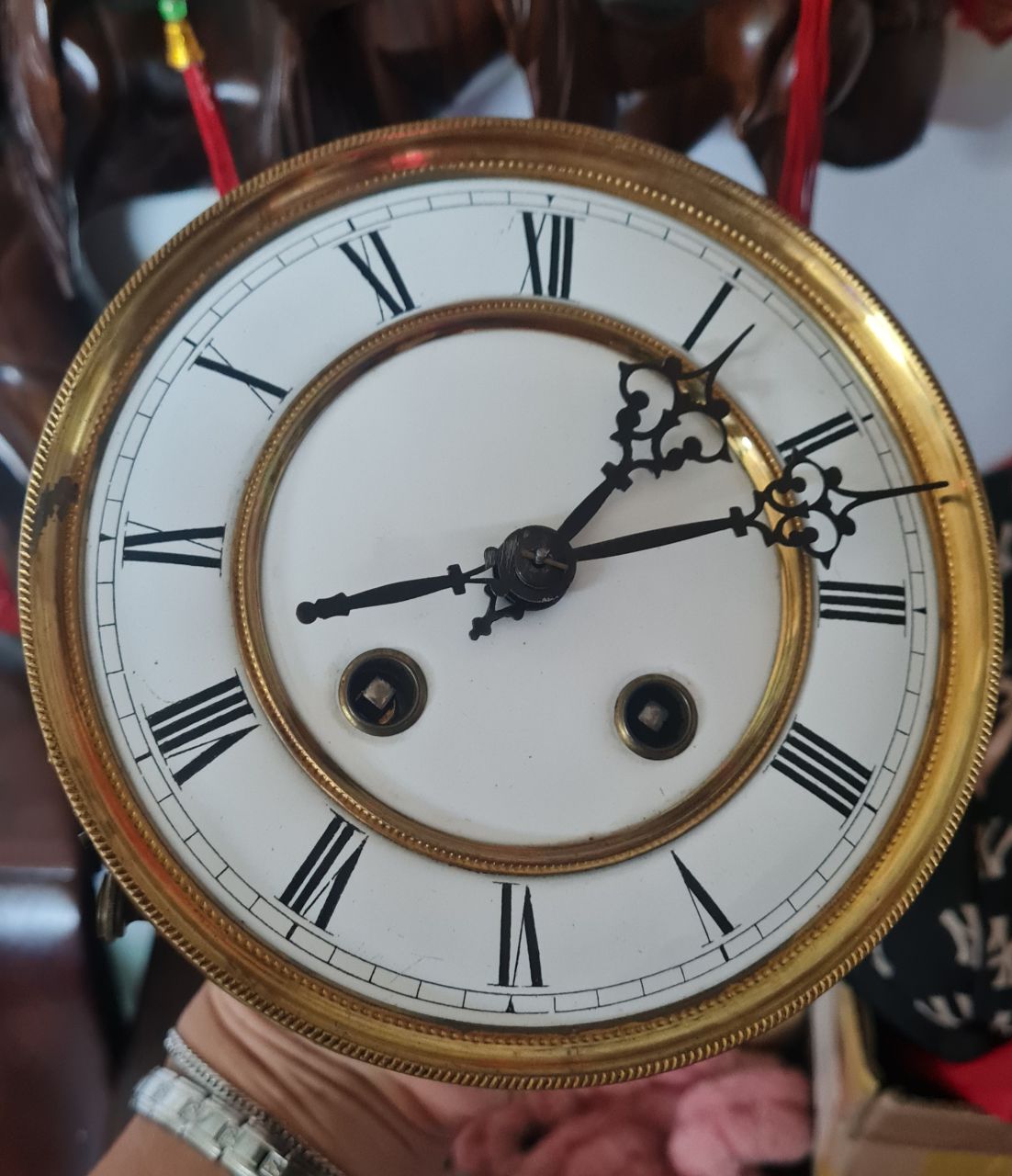 Thanh lý đồng hồ treo tường như hình. Vỏ gỗ. Mặt số con lắc bằng men trắng. Còn hoạt động tổt.