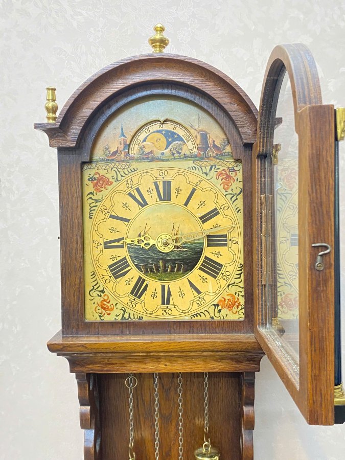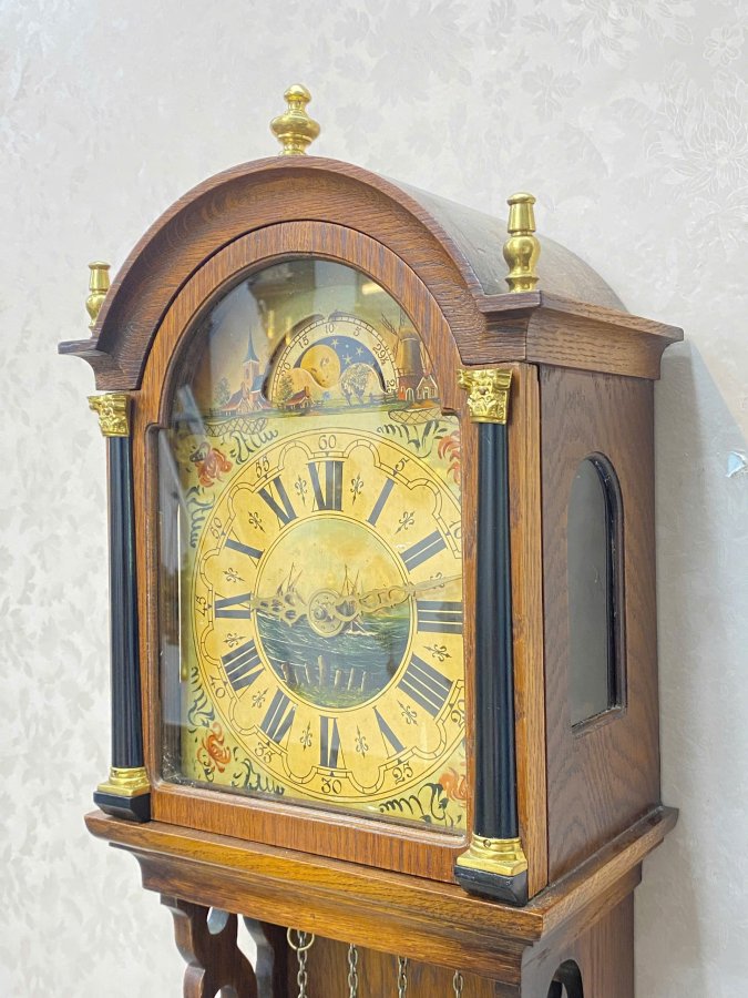 - Kiểu dáng cổ điển : vỏ gỗ phối đồng , mặt số la mã cổ điển, lịch trăng sao , lịch ngày ở vị trí 6 h rất ít gặp , 2 tạ bằng đồng