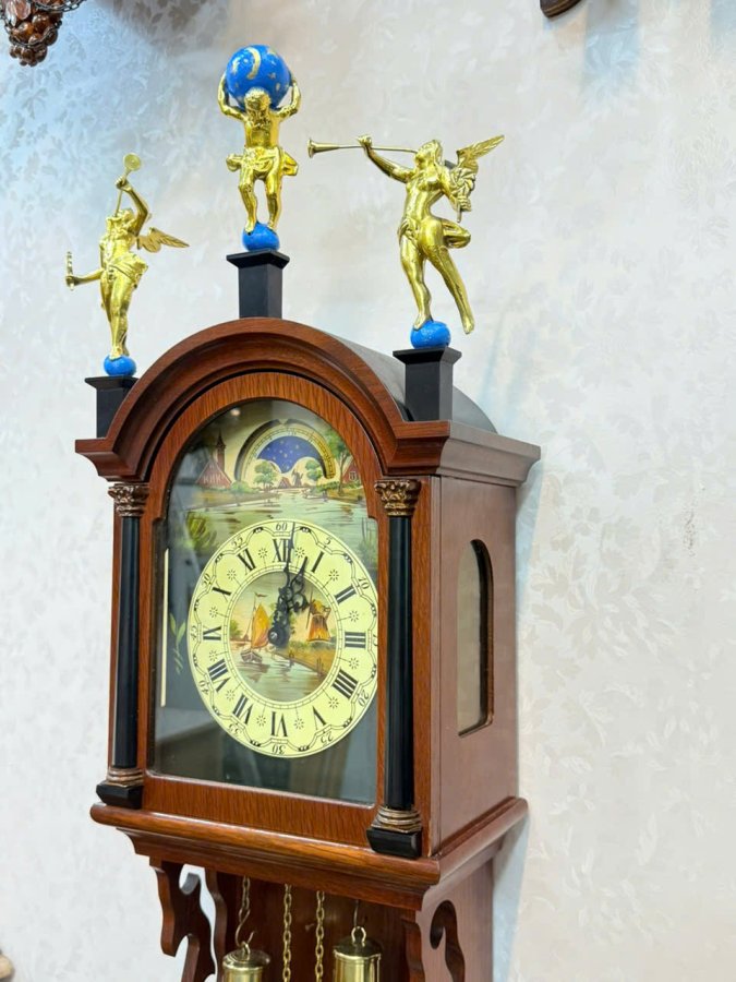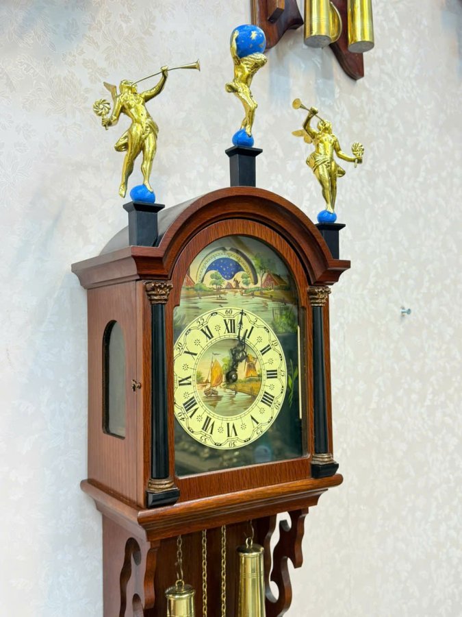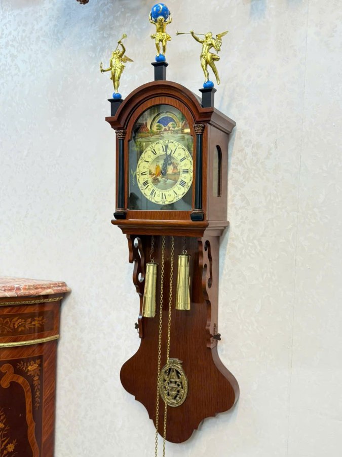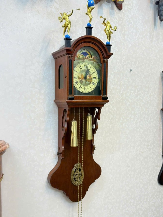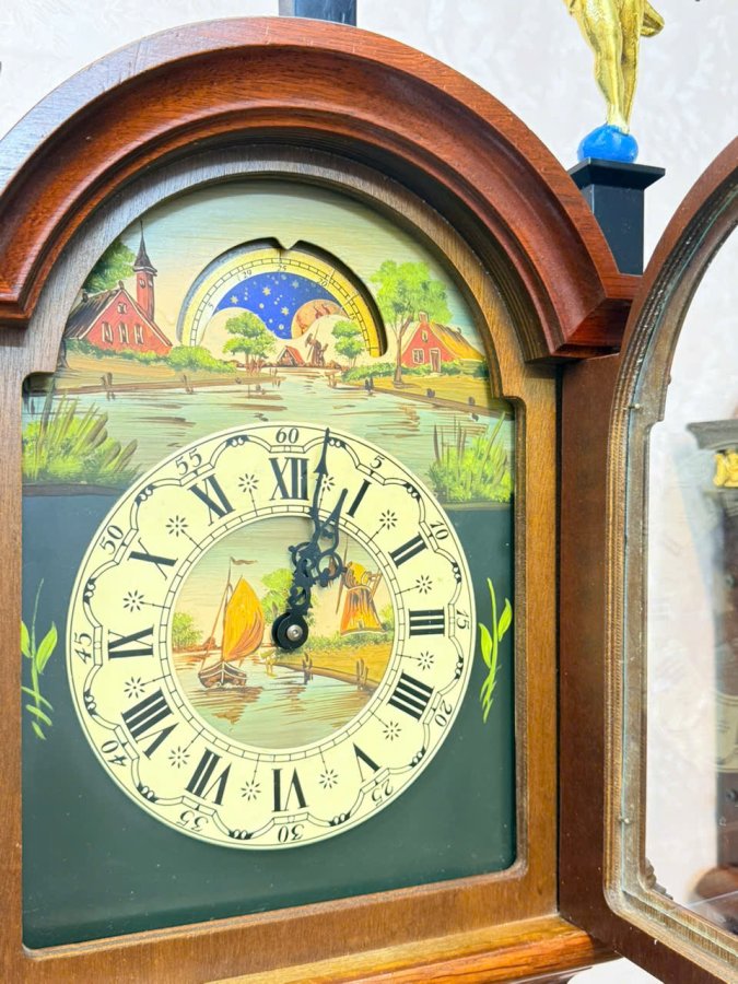Đồng hồ treo tường 2 tạ khúc wuba Hà Lan mặt số vẽ tay - có lịch ngày độc đáo