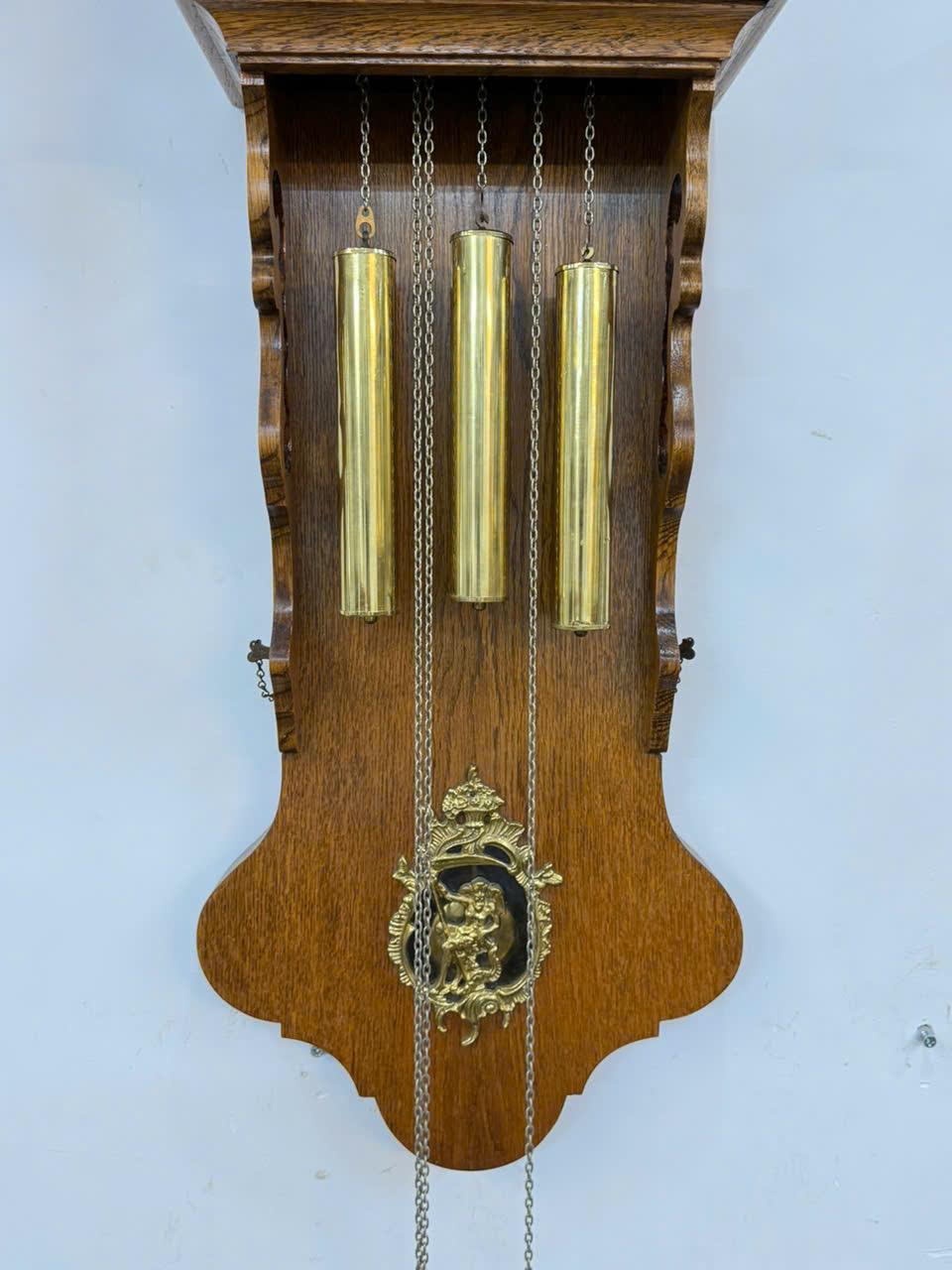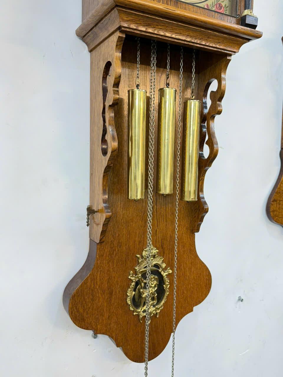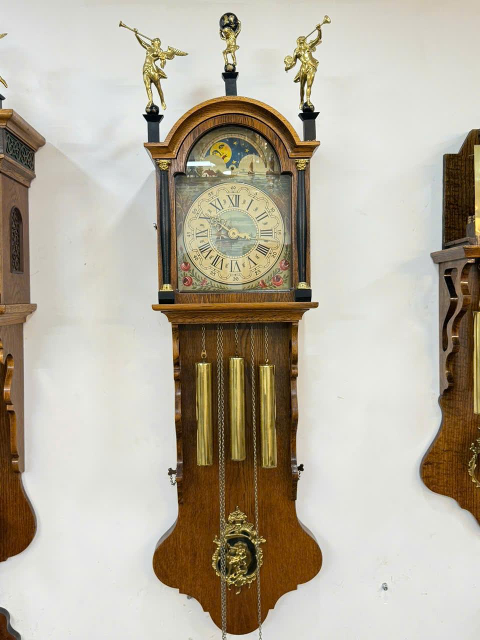📌 Vỏ gỗ sồi được chạm khắc tinh tế phối với các chi tiết đồng rất đẹp , 3 thiên thần ,3 tạ , lắc bằng đồng sáng bóng ...