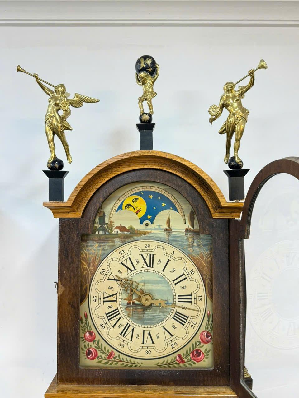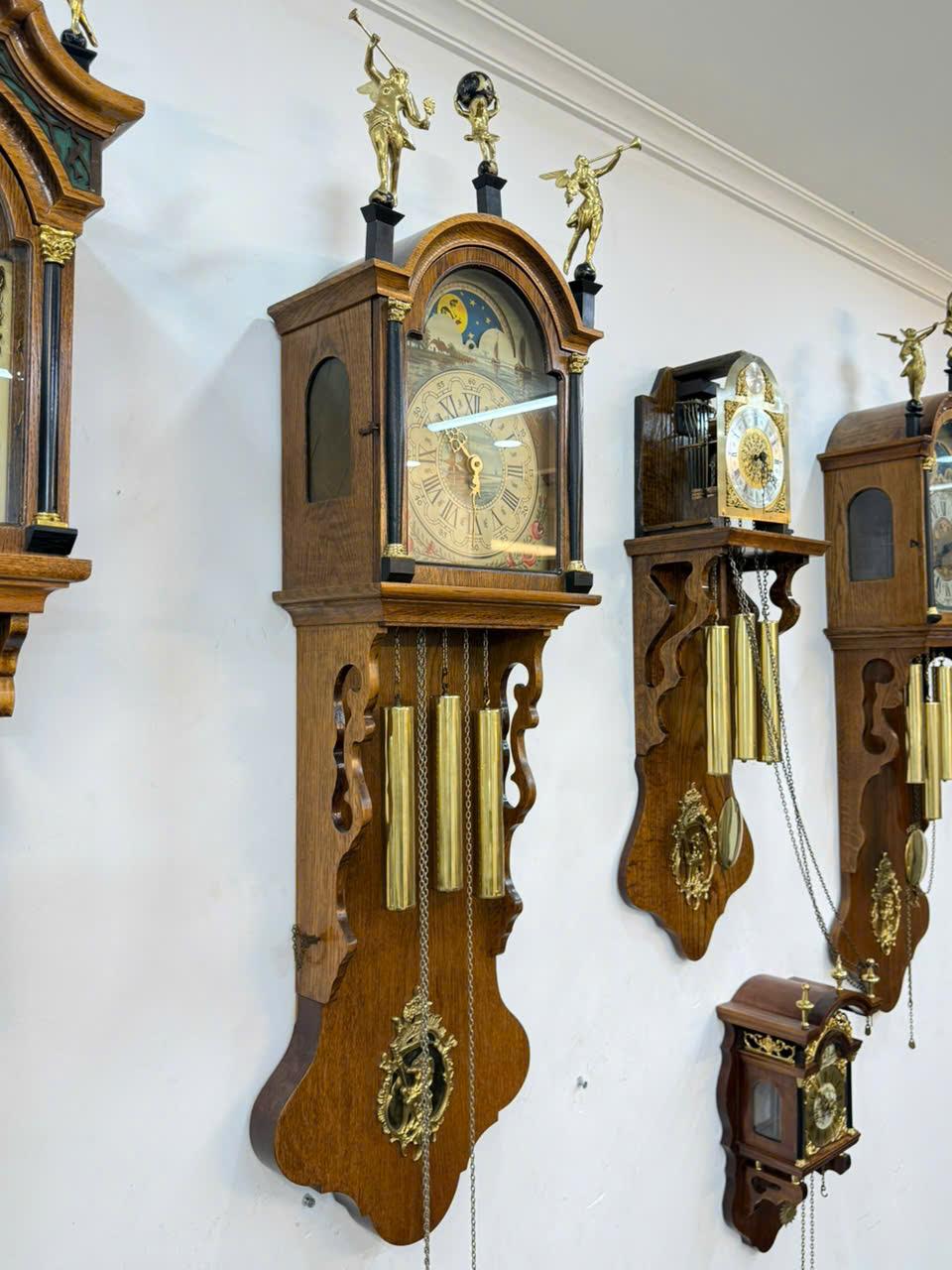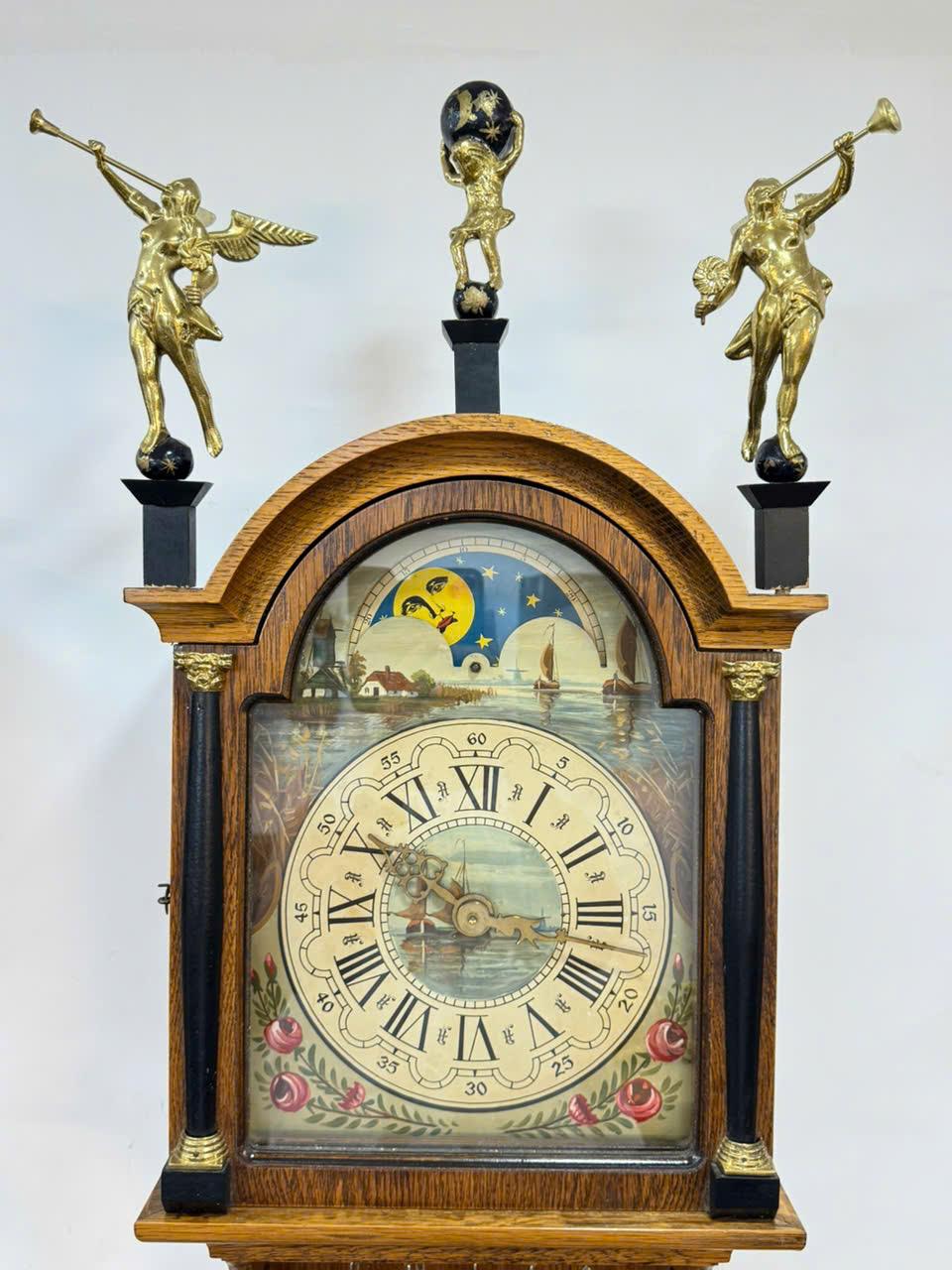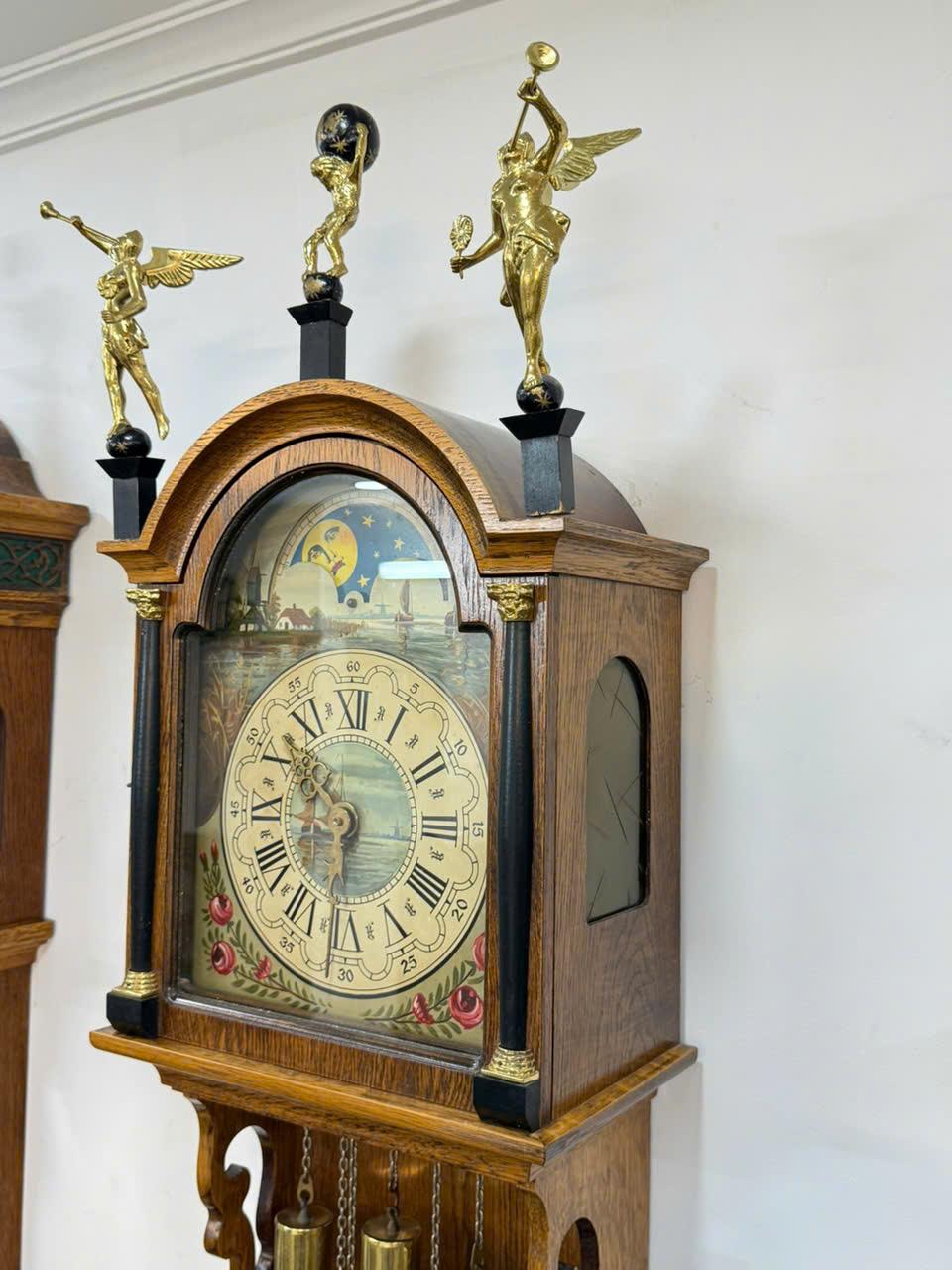 📌 Vỏ gỗ sồi được chạm khắc tinh tế phối với các chi tiết đồng rất đẹp , 3 thiên thần ,3 tạ , lắc bằng đồng sáng bóng ...