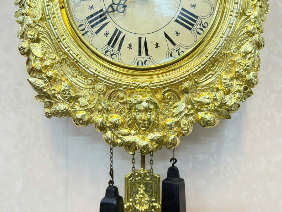 Đồng hồ treo tường Comtoise — mặt mạ vàng, máy 3 gong pinh-pong