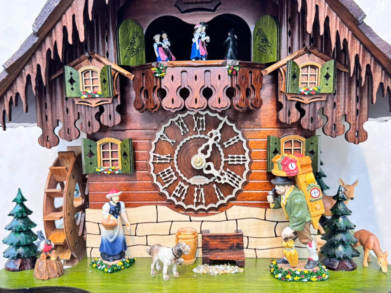 👏 Chiếc đồng hồ sở hữu nhiều hoạt động :cối xay gió, thợ đồng hồ chuyển động,đầm xoay và không thể thiếu là chú chim Cuc-koo Cuc-koo .