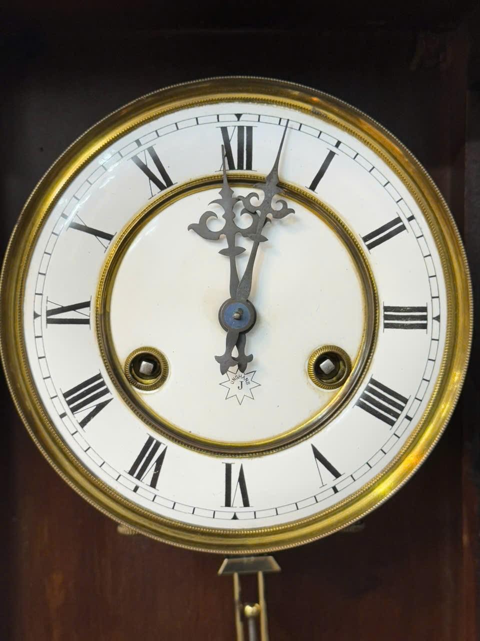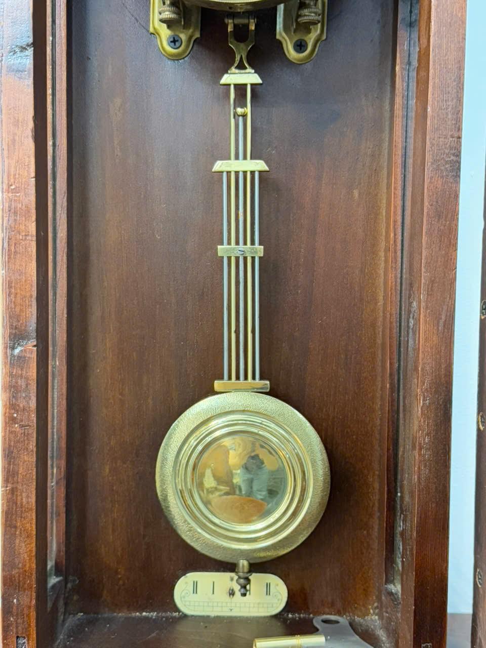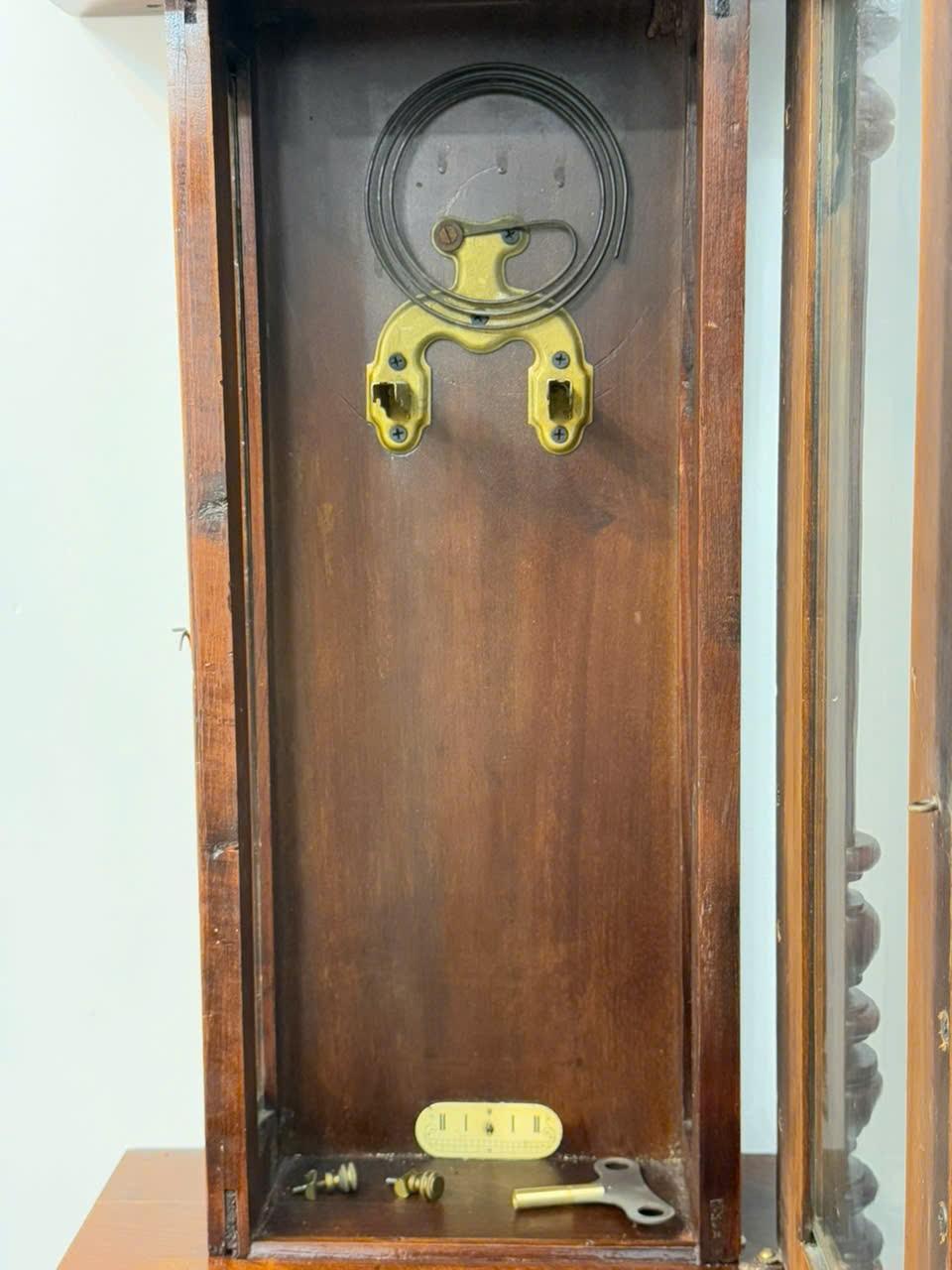 Máy : Chính hãng Junghans , máy vuông 2 ổ cos,hoạt động quả lắc, chạy tuần . Gong vòng điểm giờ và giữa giờ .