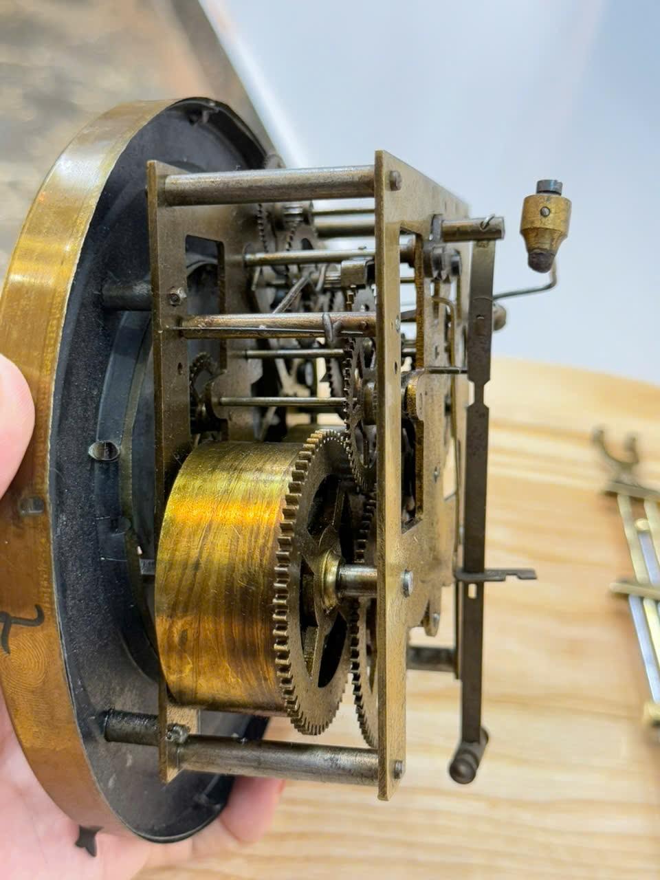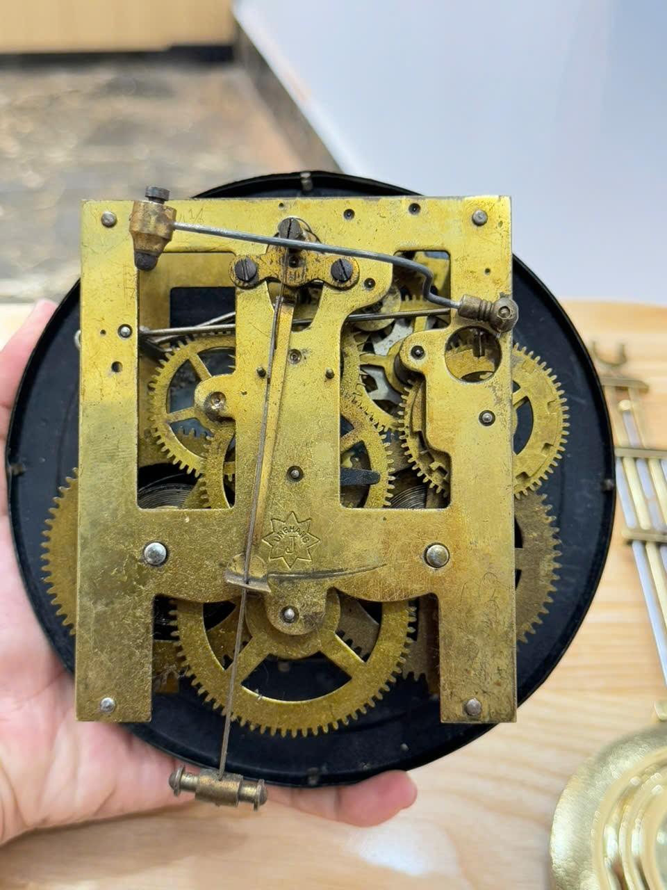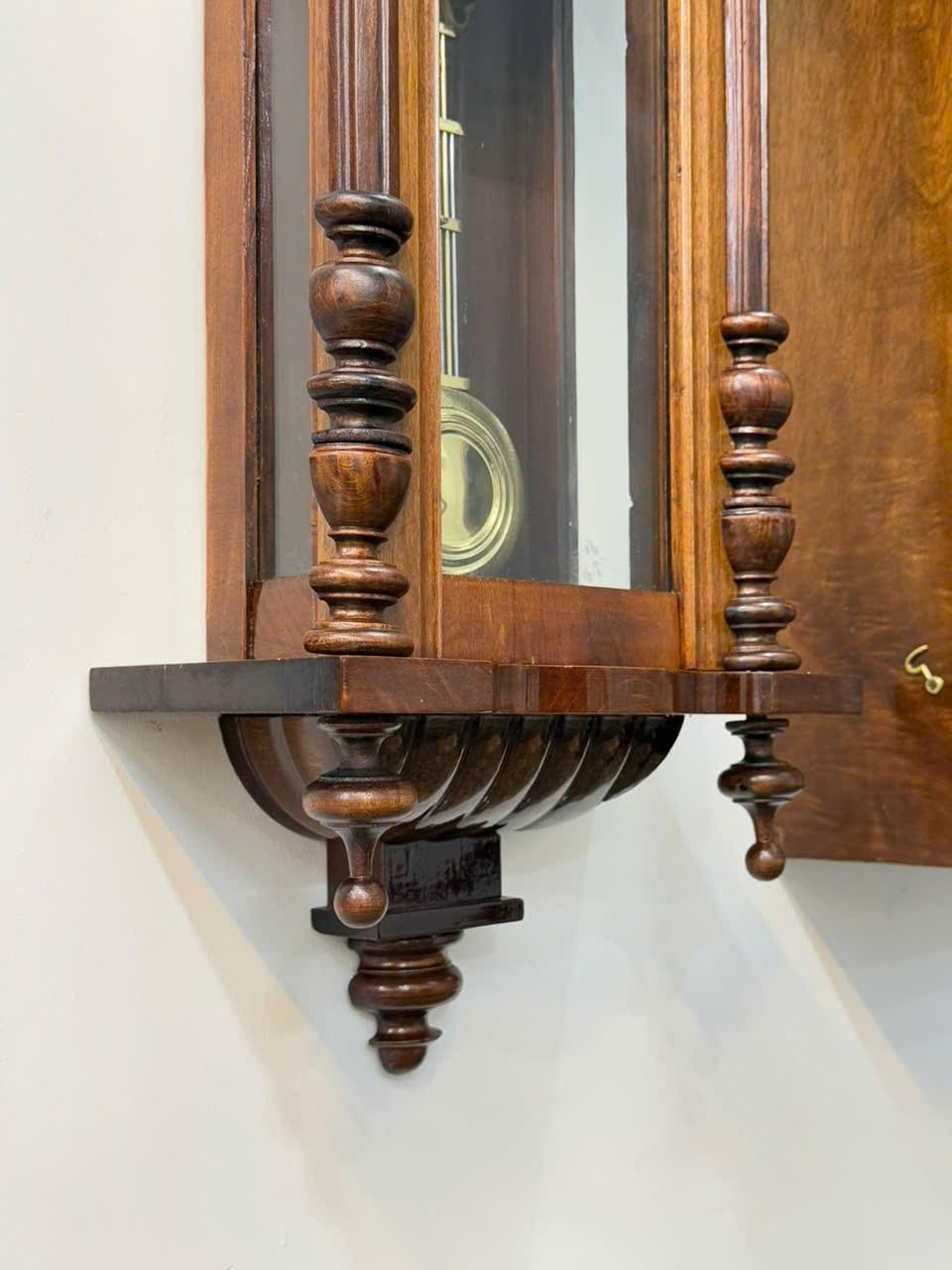 Máy : Chính hãng Junghans , máy vuông 2 ổ cos,hoạt động quả lắc, chạy tuần . Gong vòng điểm giờ và giữa giờ .