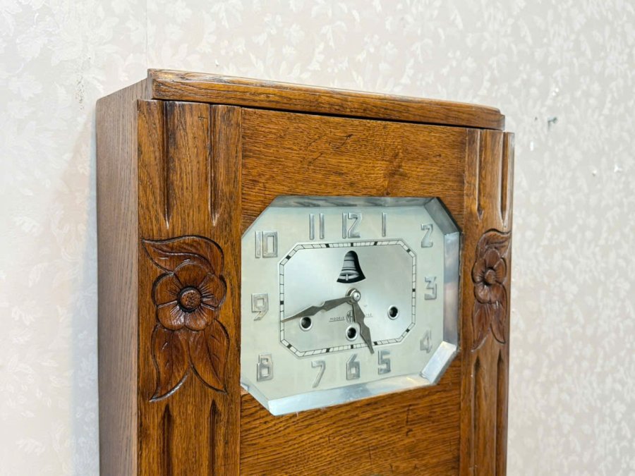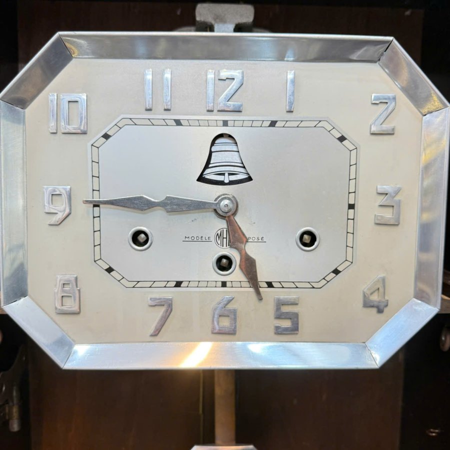 Mặt số nổi kim loại — đặc biệt có quả chuông trên mặt số, gõ nhịp cùng quả lắc, nhìn rất độc đáo.