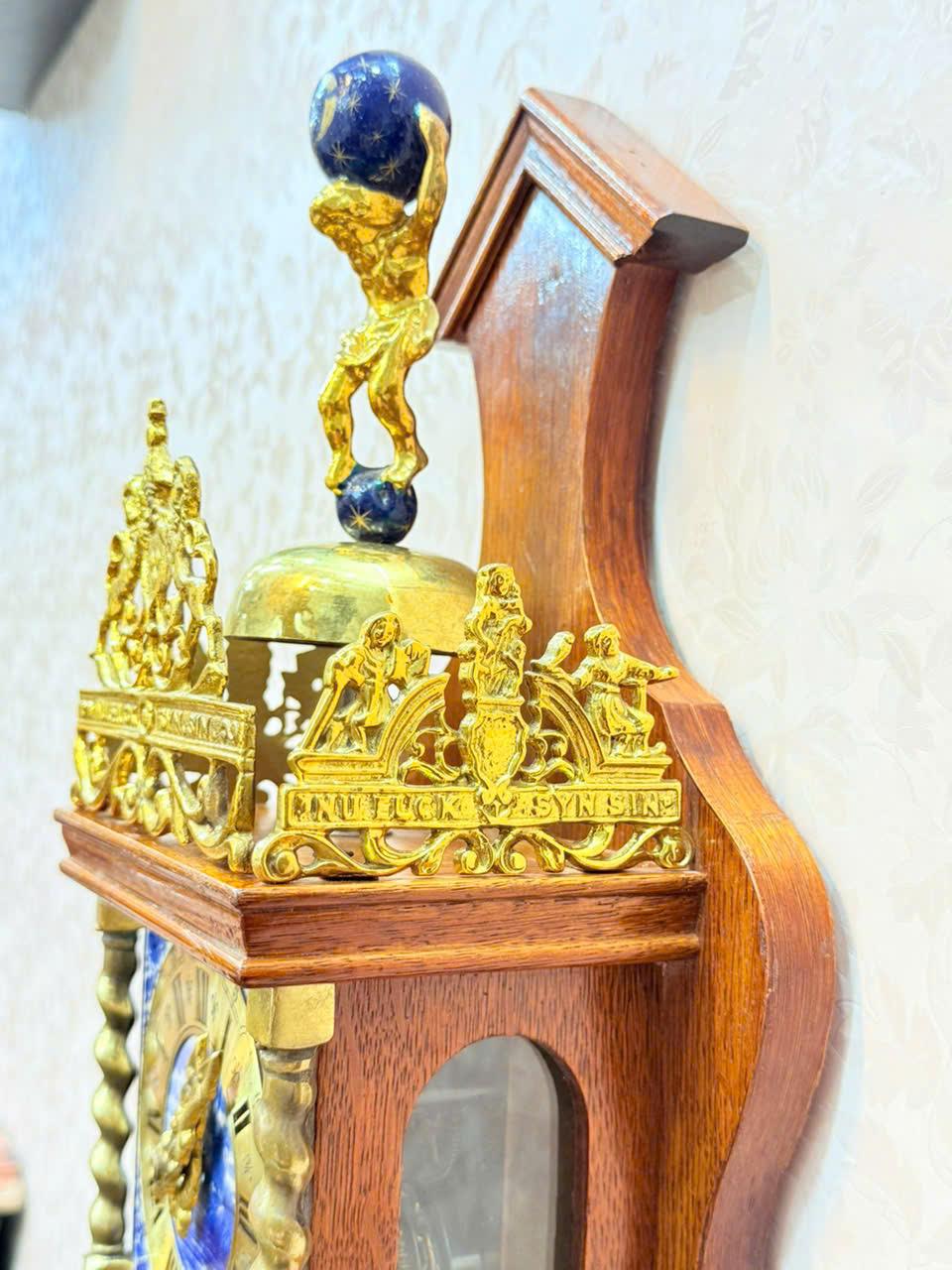 😗 Ngoại thất : gỗ phối các phù điêu đồng đúc : vị thần Atlanta , hai chú sư tử và các thiên thần rất đẹp , hai bên mặt số là 2 cột xoắn bằng đồng tạo nên sự vững chắc cũng như điểm nhấn sang trọng cho chiếc đồng hồ