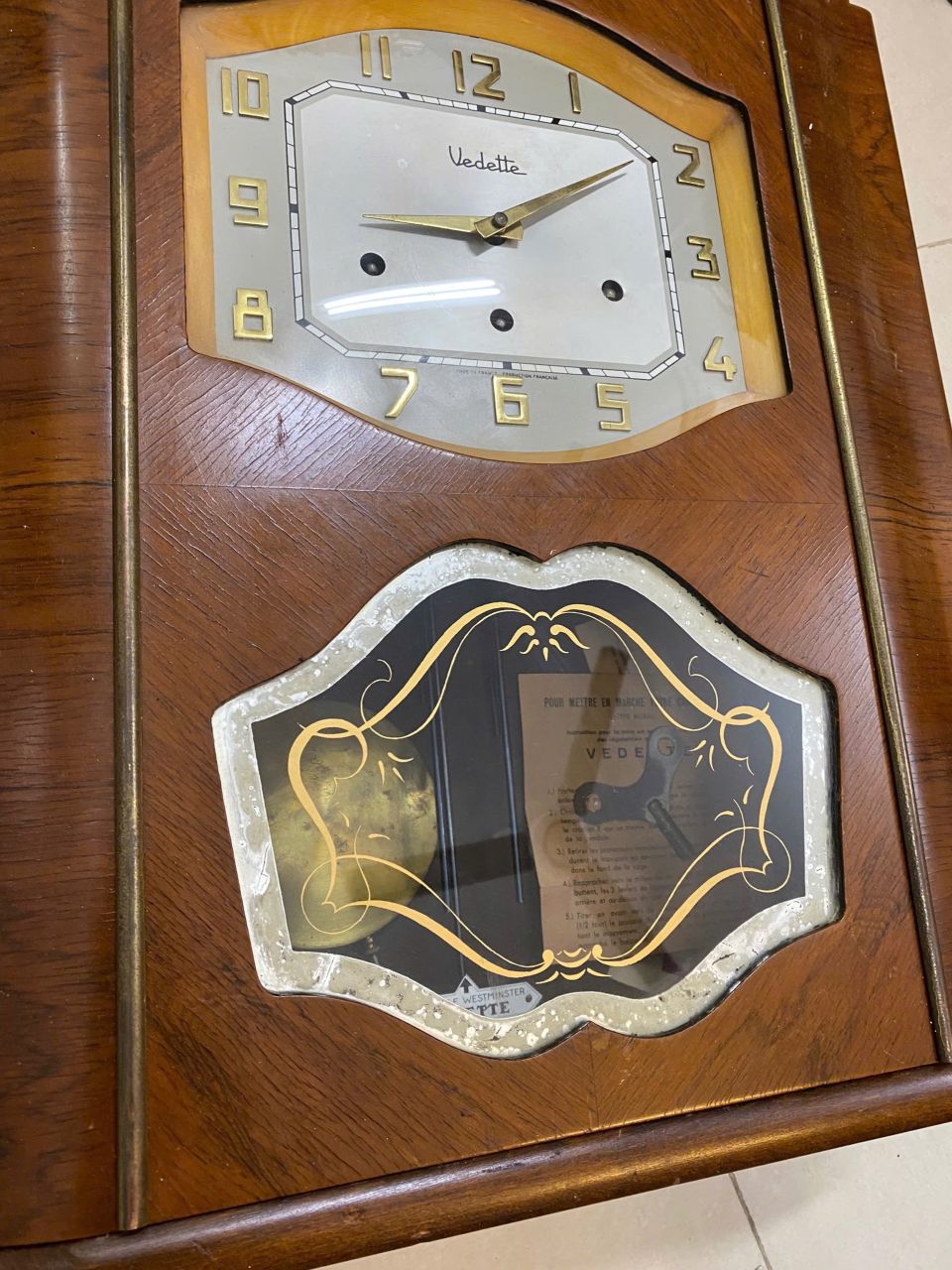 Đồng hồ treo tường Vedette 8g8b Pháp _số nổi vàng đồng (Giấy hãng)Thùng bè, mặt quay chảoGiá thợ: 8,5trZalo: 0862.144.188