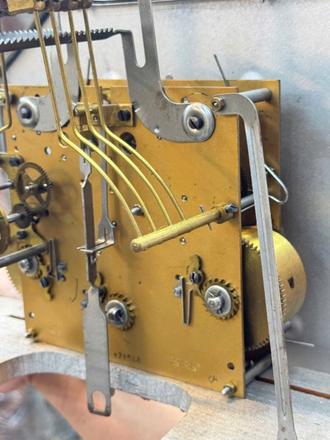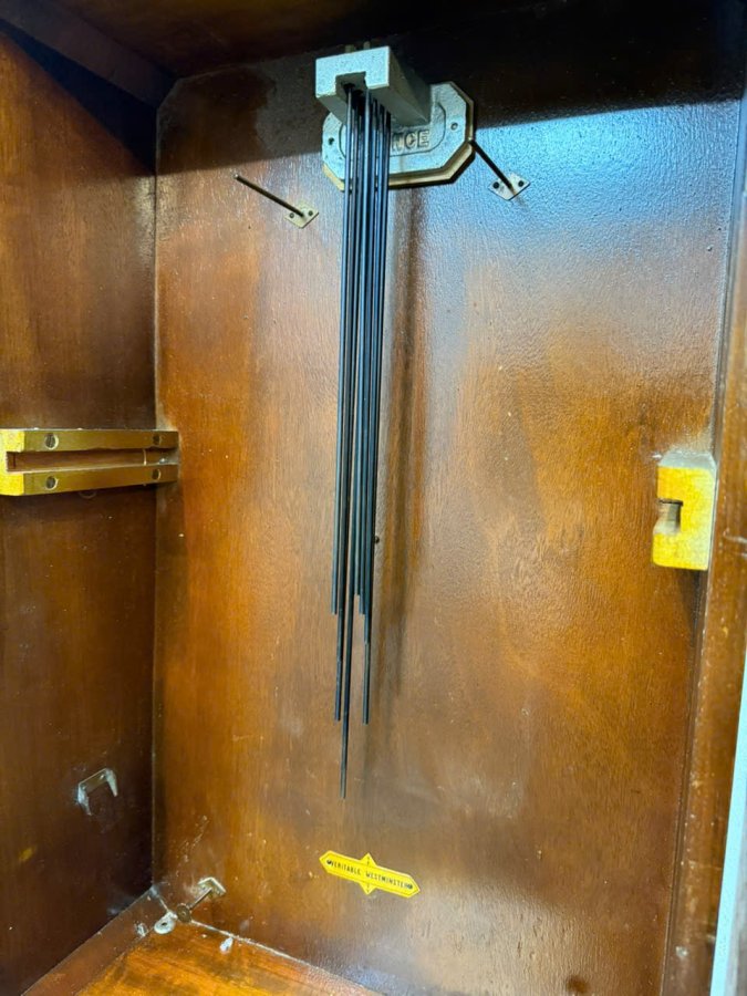 Bộ máy chính hãng — 8 gông 8 đập, chơi nhạc Westminster; cứ 15 phút điểm nhạc 1 lần.
