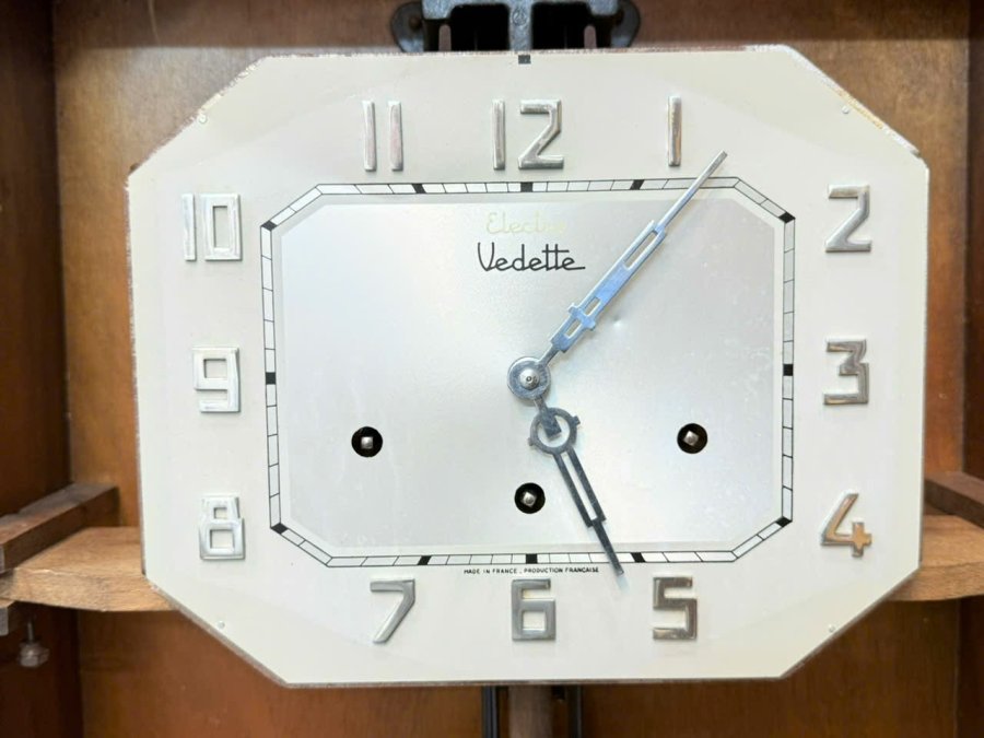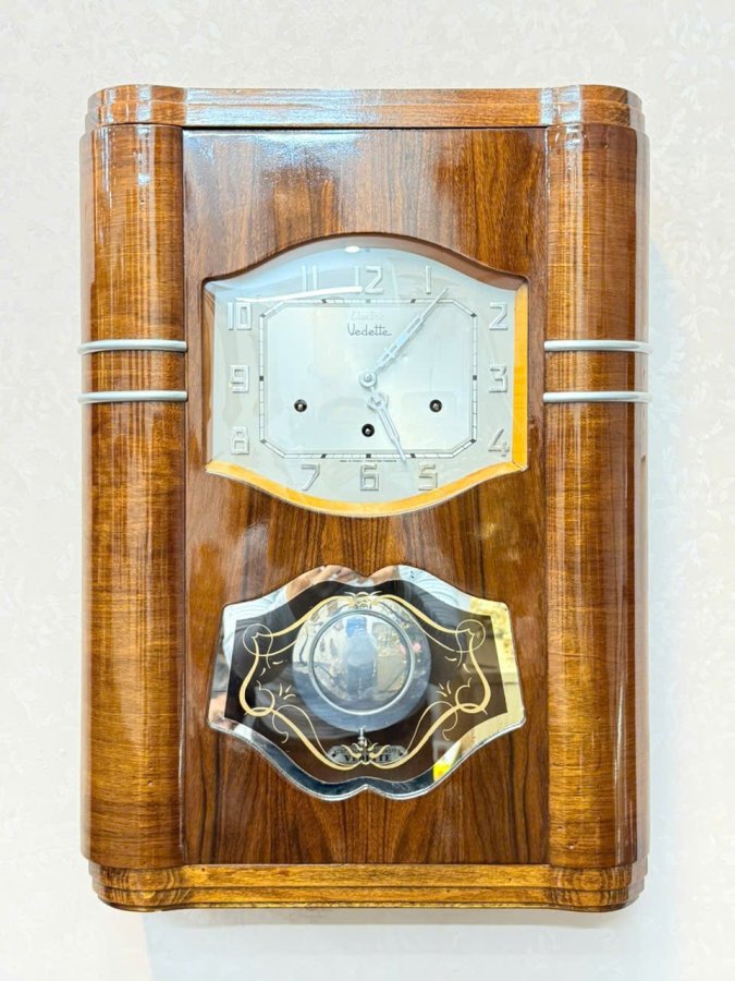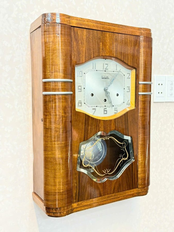 Đồng hồ treo tường Vedette thùng nu số nổi Pháp xưa