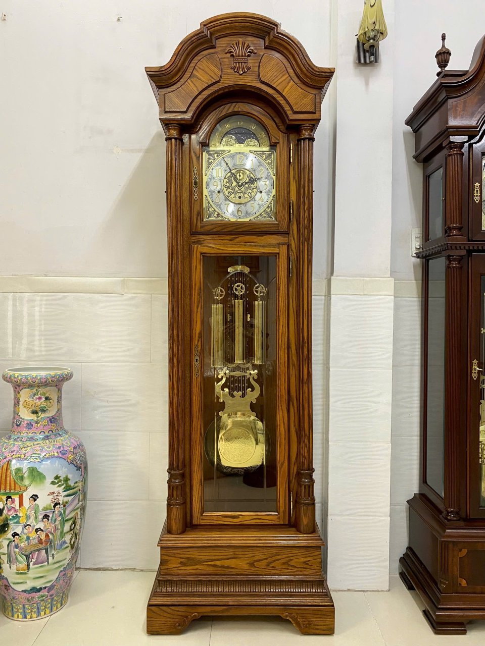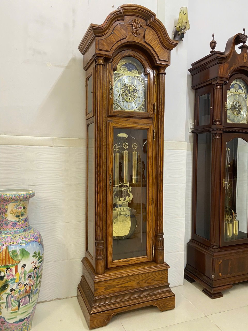 Đồng hồ tủ cây Sligh Mỹ 12 gông _Ngắt chuông đêm tự động12 gông 12 búa, 3 bản nhạcC 217cm, N 65.5cm. Thiết kế 2 cửa, thân gỗ sồi chắc nịt.36,5tr