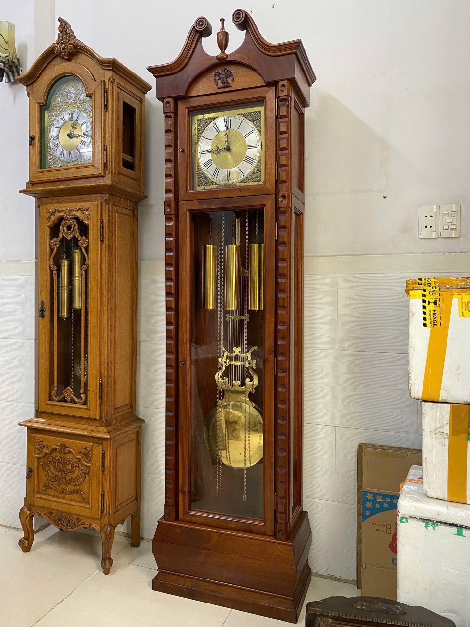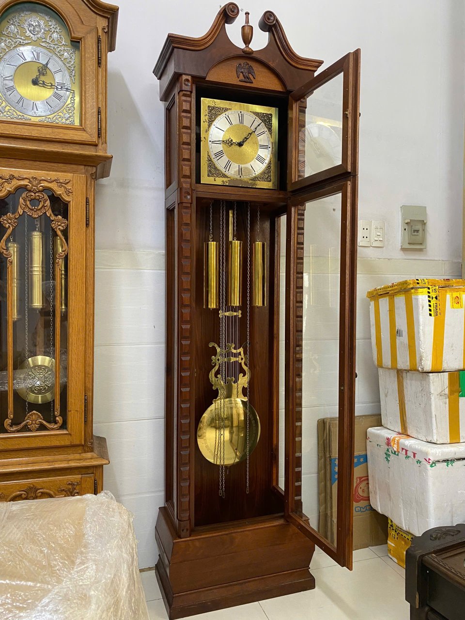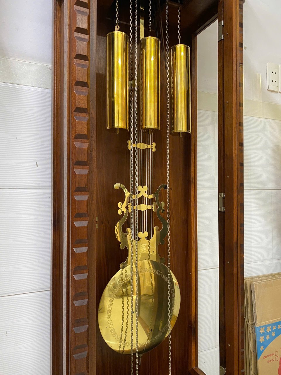 Đồng hồ tủ Đức 12 gông 12 búa 3 bài âm hay -máy UrgosC 211cm, N 57.5cmLắc đàn lớn, 3 tạ xích(bao làm sáng nền đồng mặt số)18,5tr