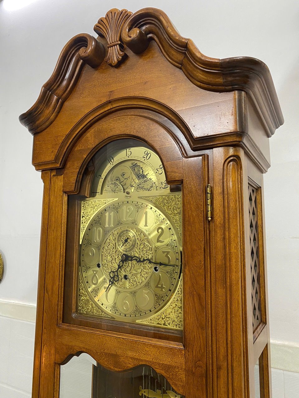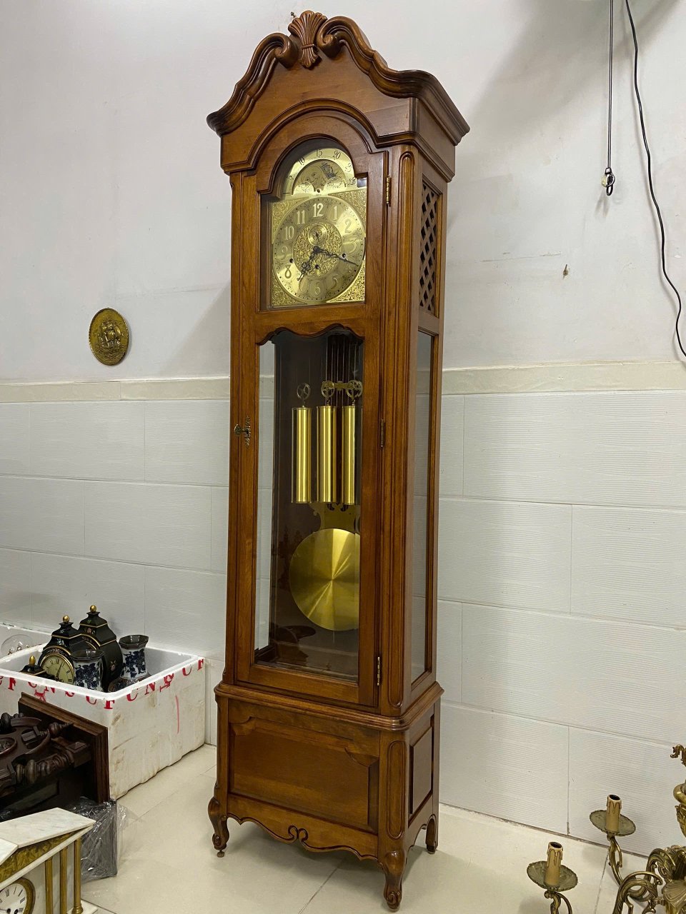 Đồng hồ tủ Ridgeway Mỹ 12 gông 3 bài _Giá thợ 24,5trKT: C 208cm, N 58cm3 tạ cước tuần, đồng hồ quả lắc lớnChế độ ngắt chuông.Độ mới trên 95%