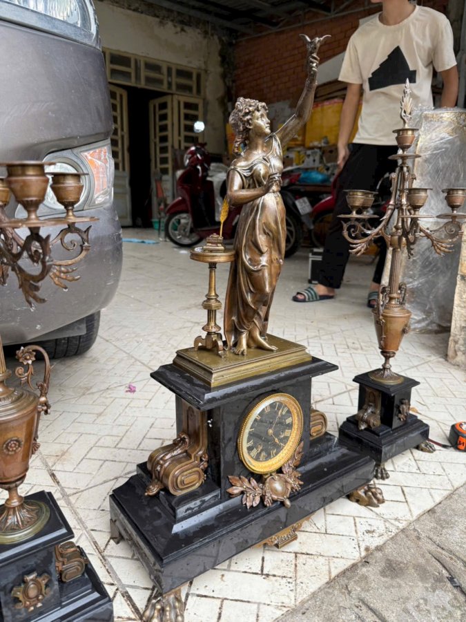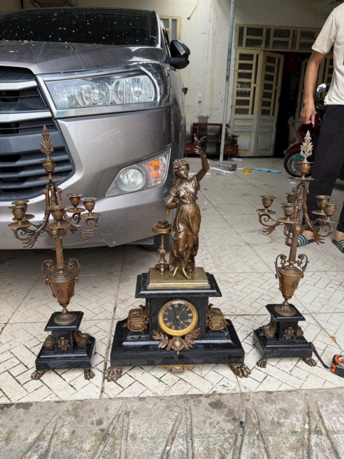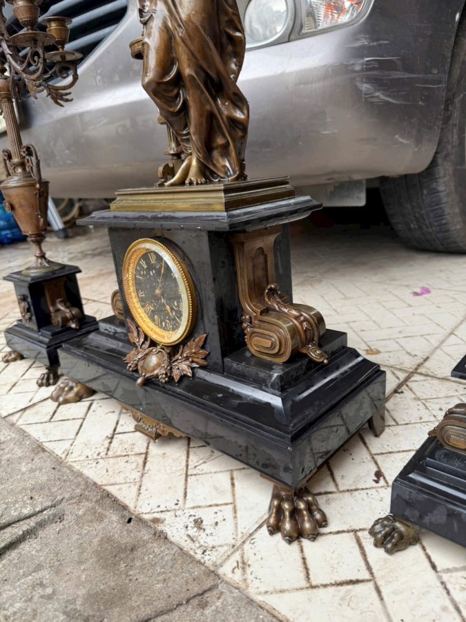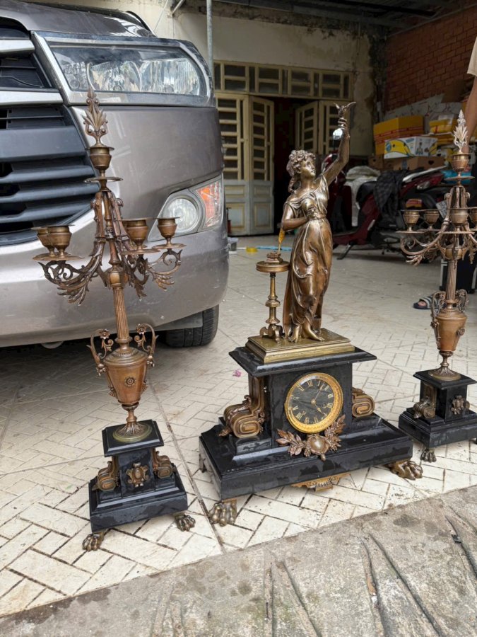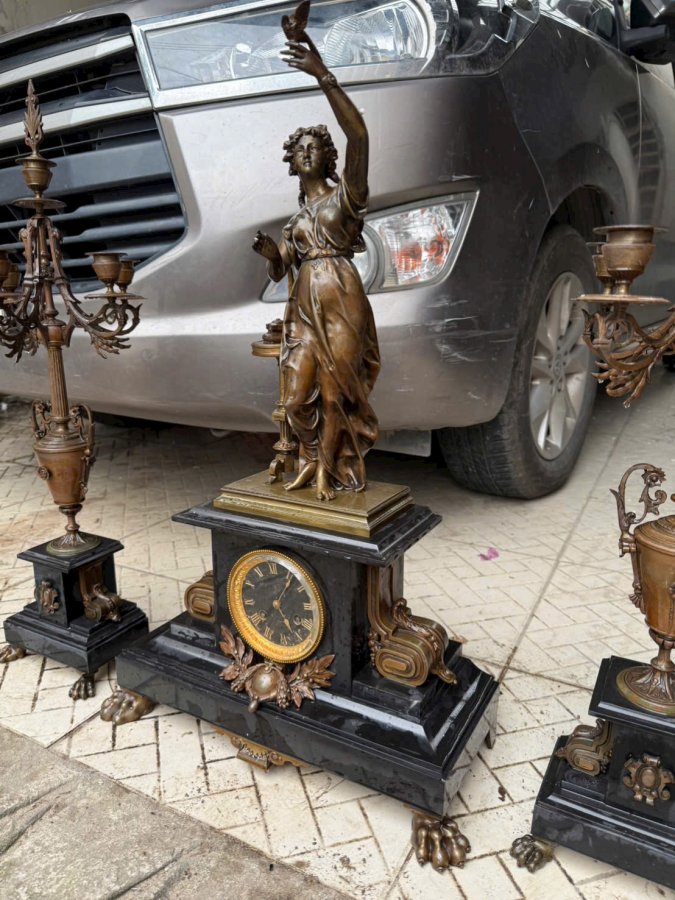 Bộ đồng hồ chân nến ba món của Pháp bằng đồng phối với đá màu đồng cực đẹp theo thời gian chân móng rồng hòa văn chi tiết sắc nét. Xứng đáng để sưu tầm hoặc biếu tặng. Call:0333534345