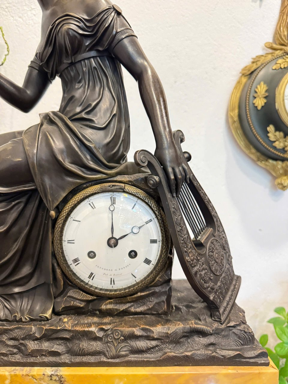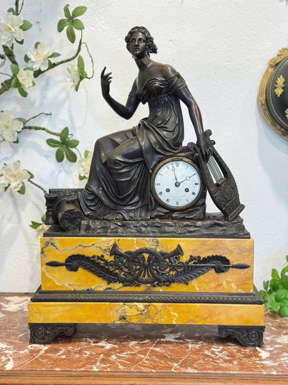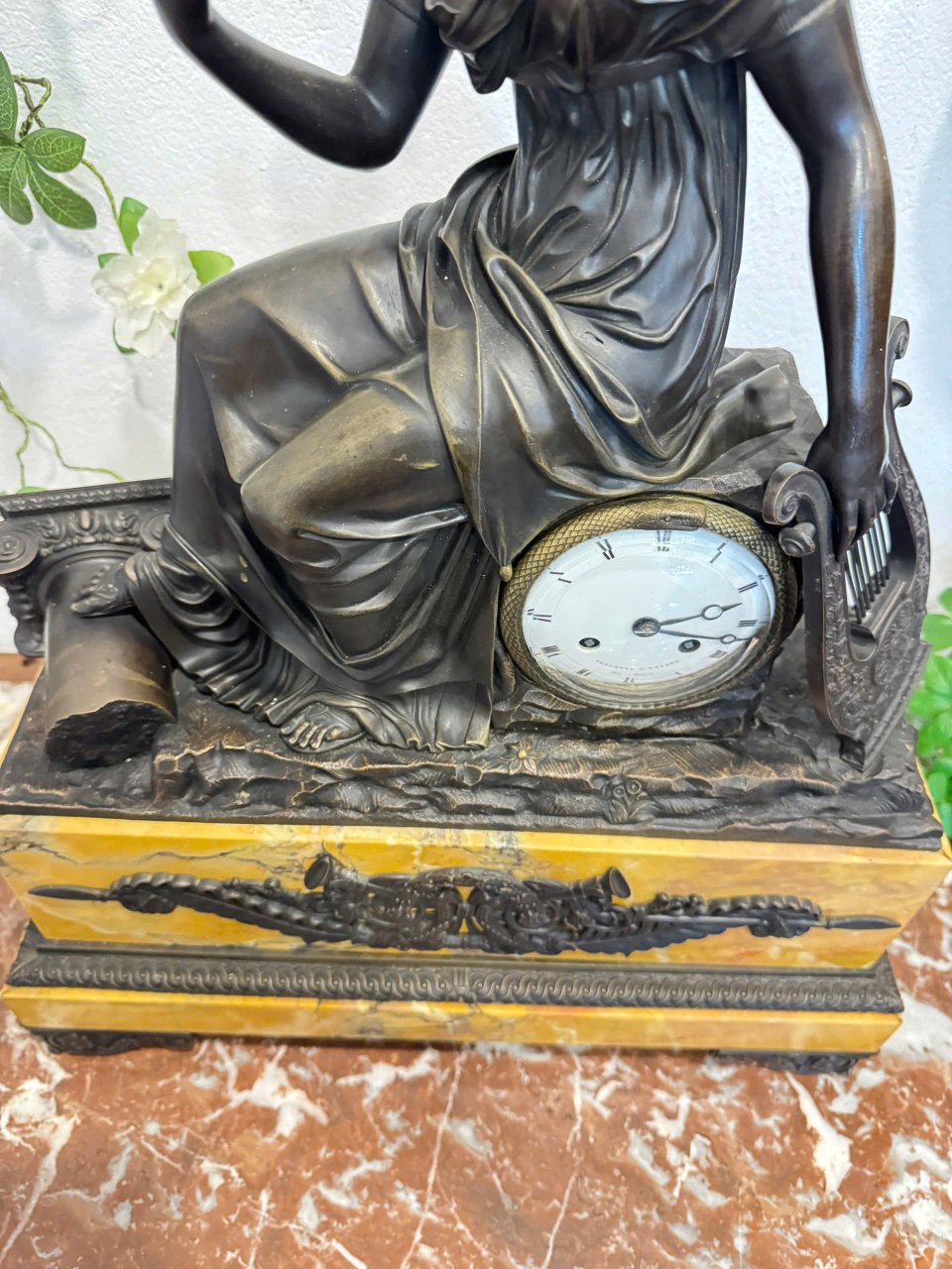 Kích thước: C63 cm, N46.5 cm, S17 cm- Mặt men còn rất đẹp kết hợp mặt số la mã cổ điển- Tượng đồng cực sắc nét và chi tiết- Dáng to cao sang trọng