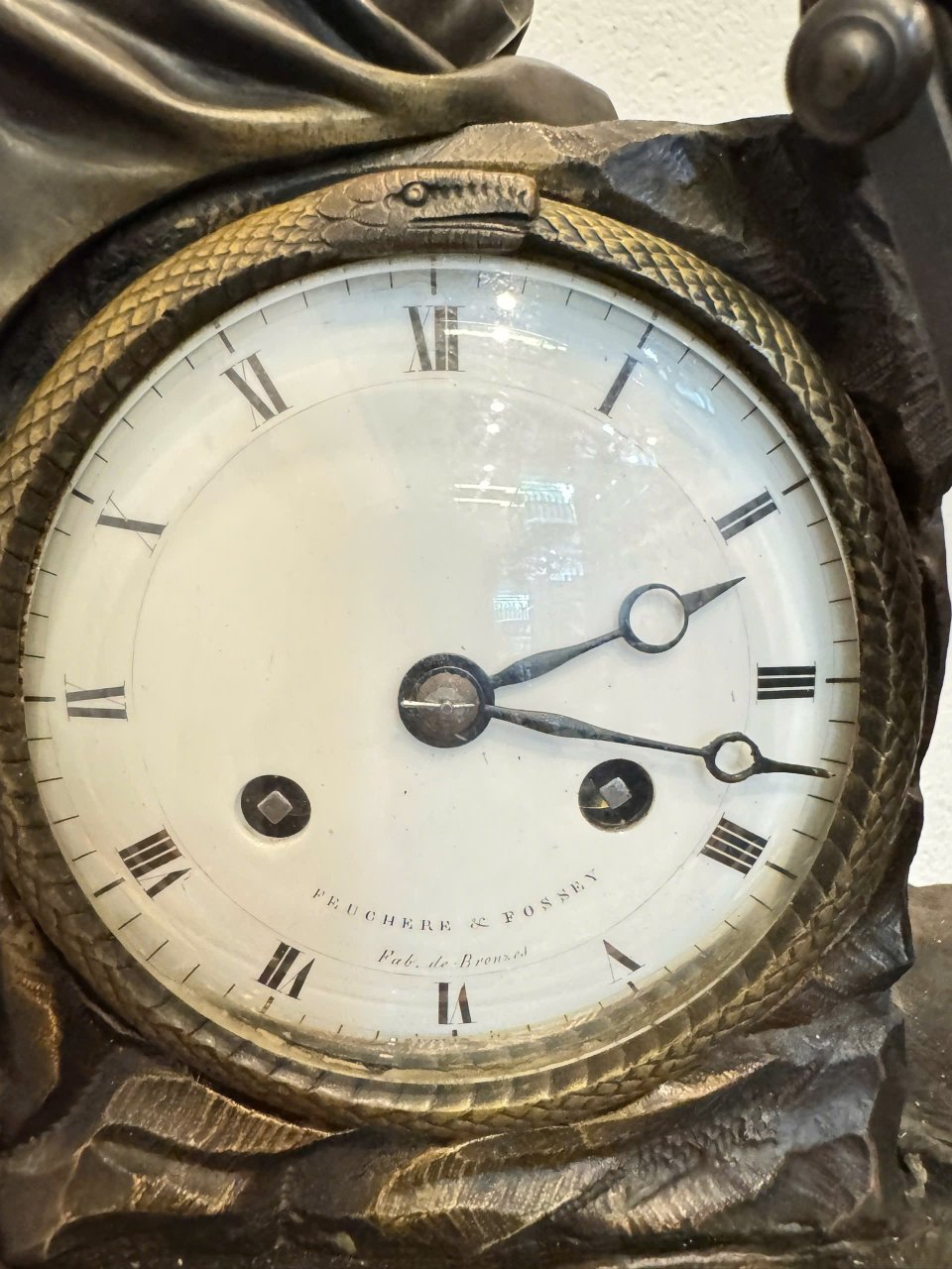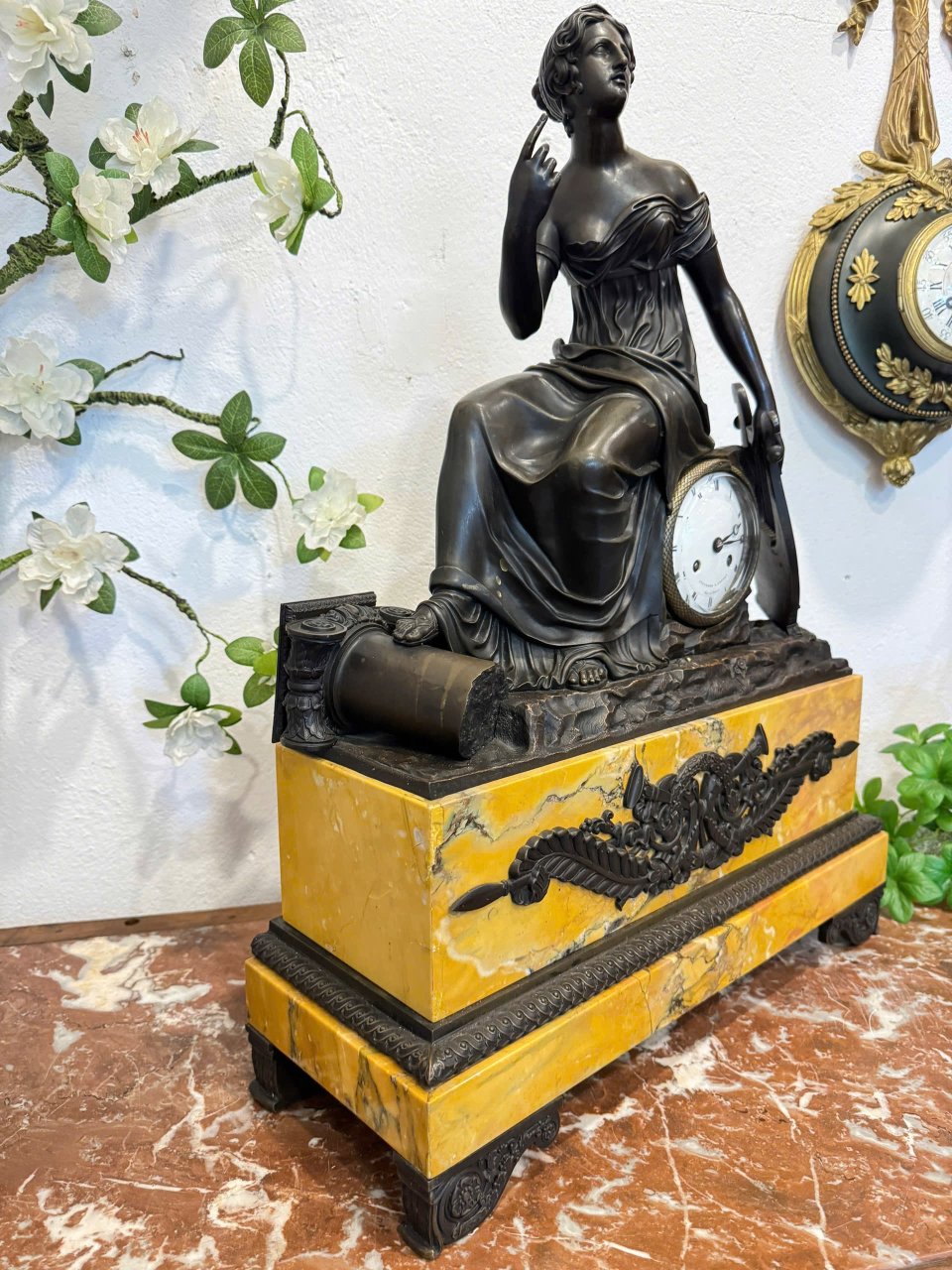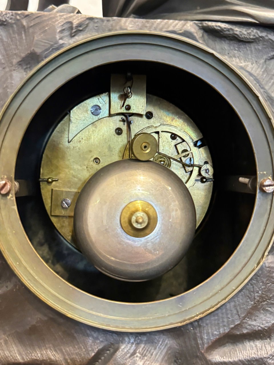Kích thước: C63 cm, N46.5 cm, S17 cm- Mặt men còn rất đẹp kết hợp mặt số la mã cổ điển- Tượng đồng cực sắc nét và chi tiết- Dáng to cao sang trọng