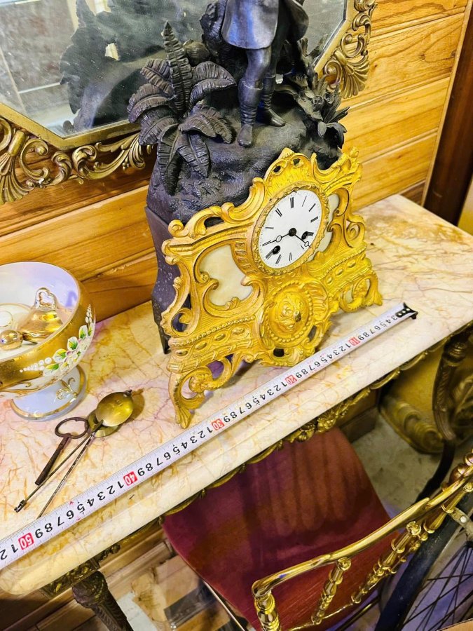 - Chất liệu: đồng lacke vàng, tượng là atimon, đá cẩm thạch, mặt số men trắng La Mã cổ điển.