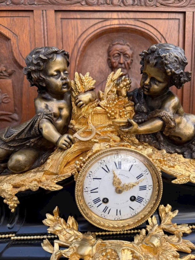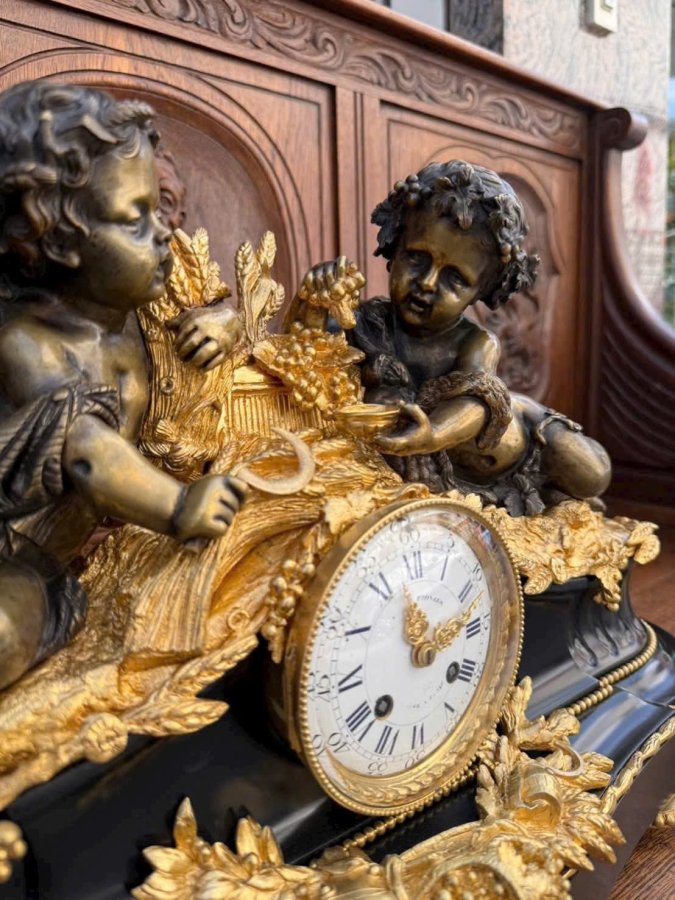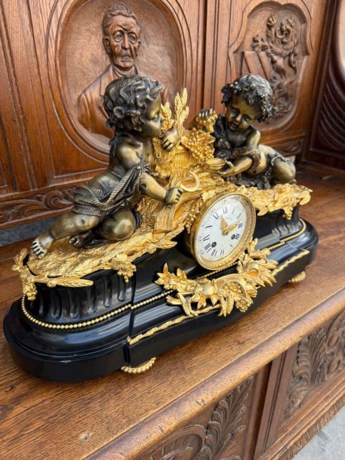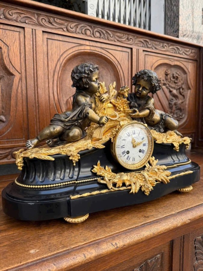 Đồng Hồ Tượng Pháp CổLacke Vàng | Tích Cặp Cu Tí Ôm Lúa Gạo