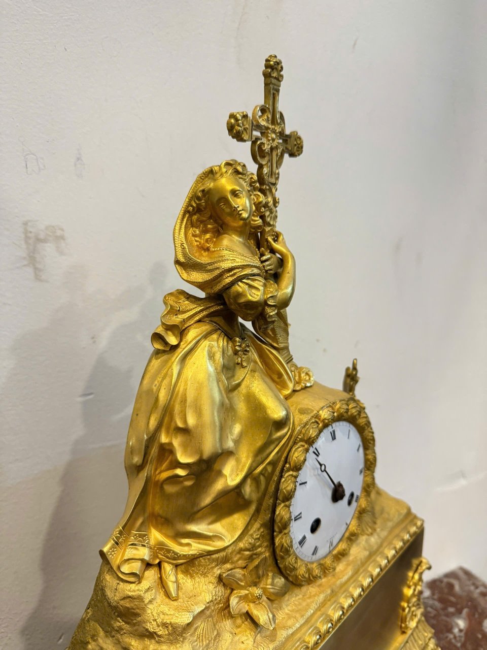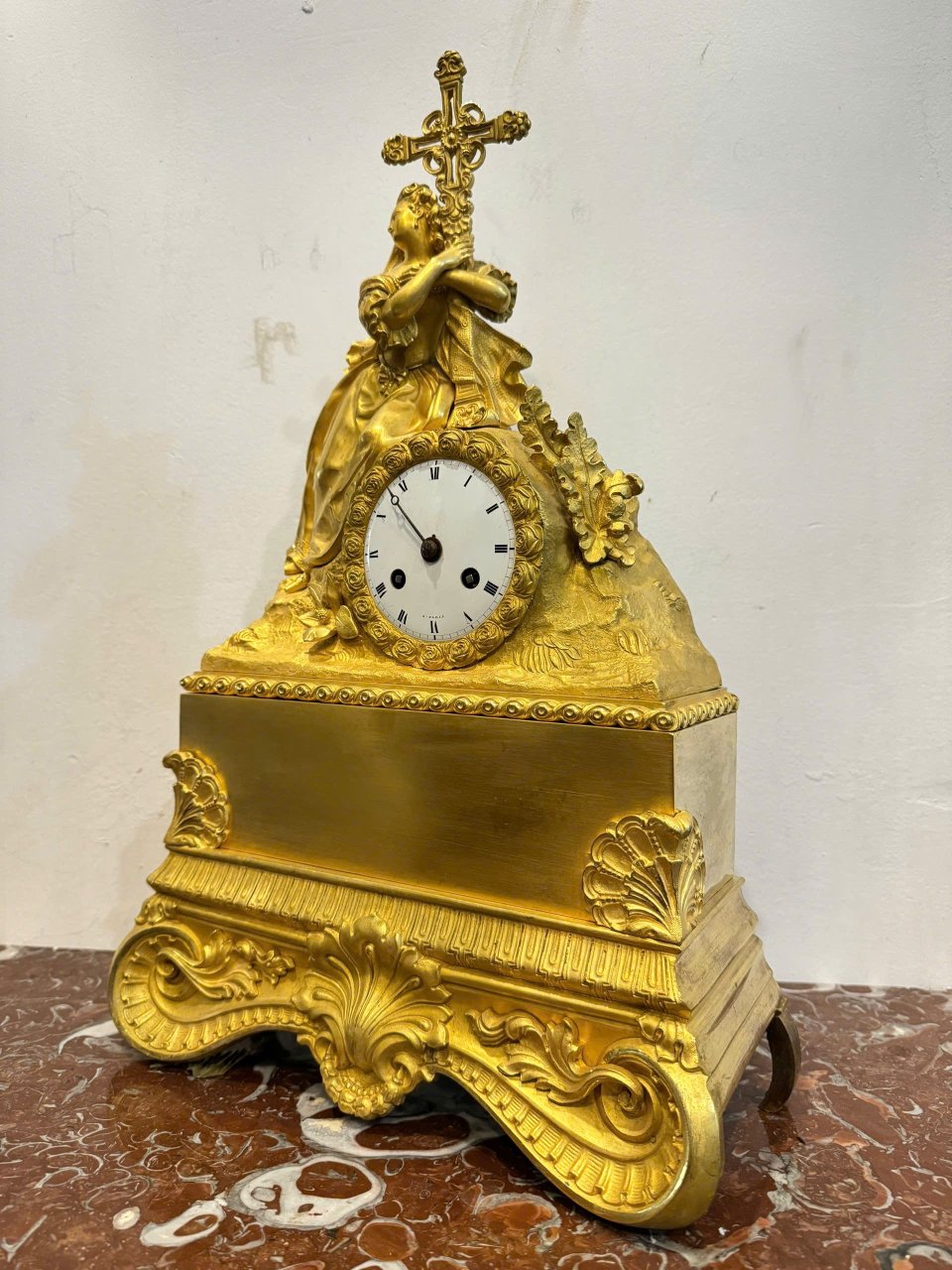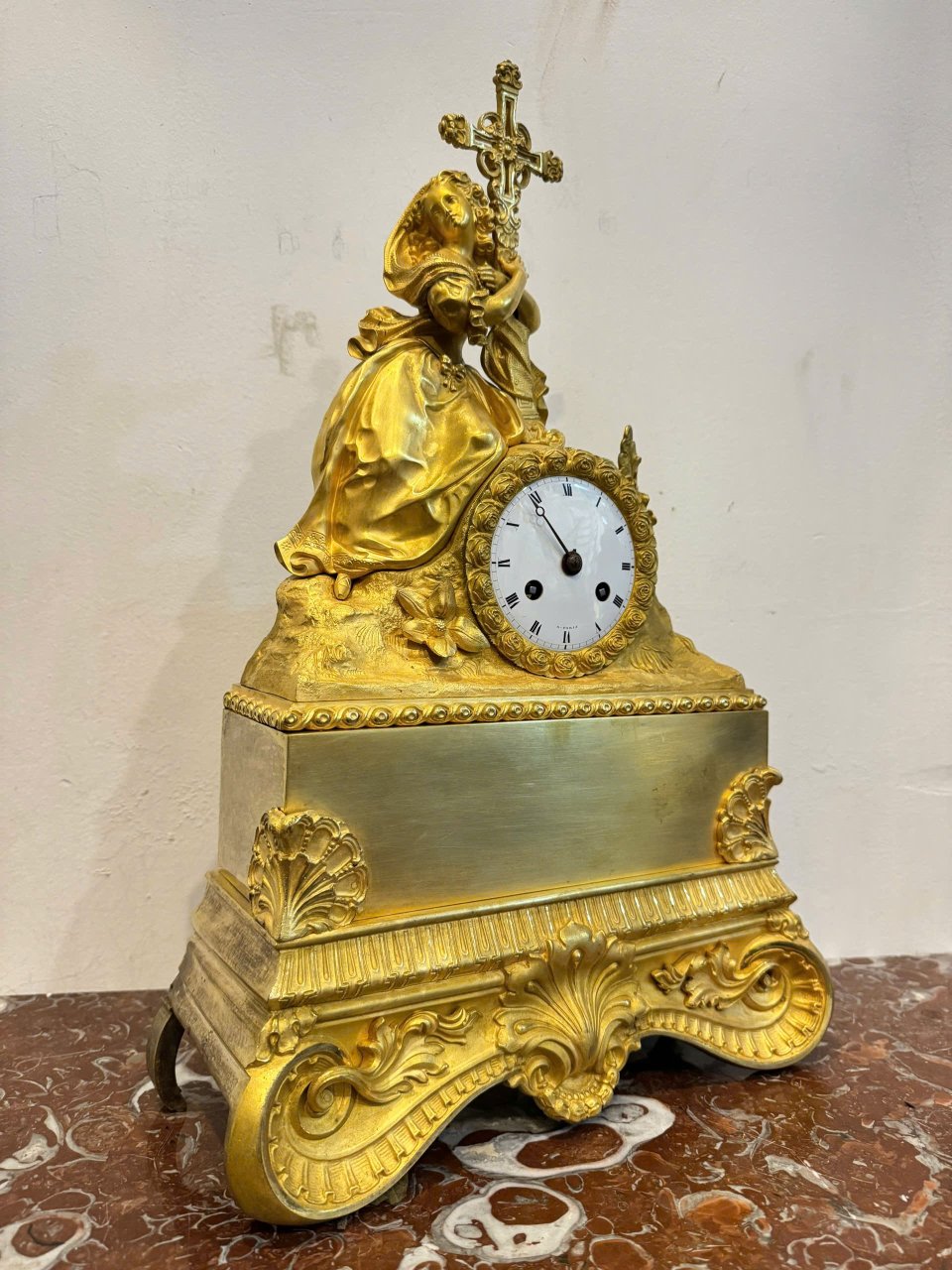 Đồng Hồ Tượng Pháp Lacke Vàng Tích Nữ Thần Ôm Thánh Giá