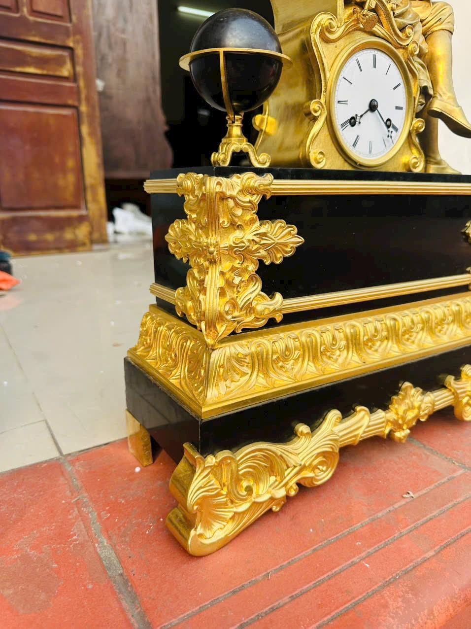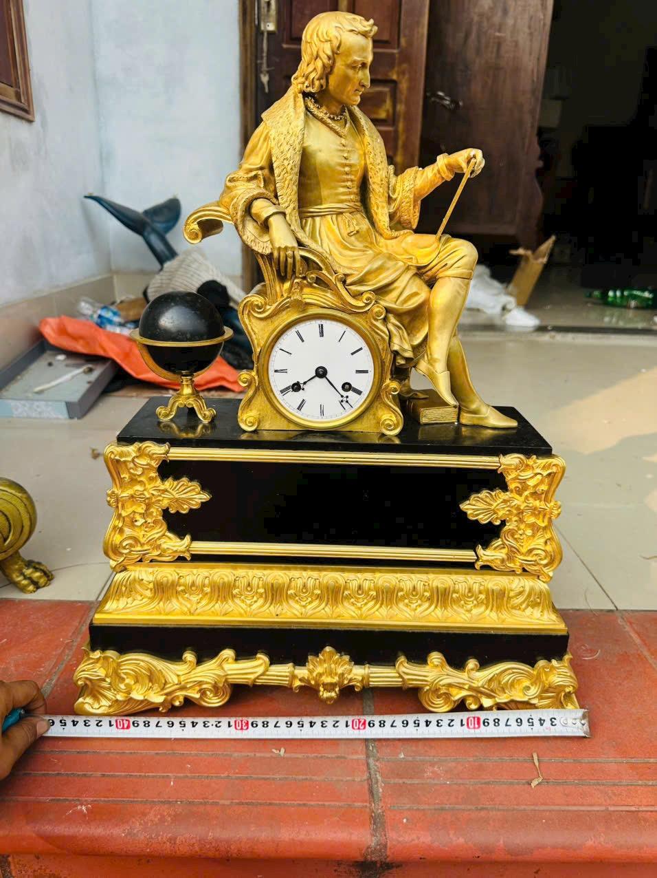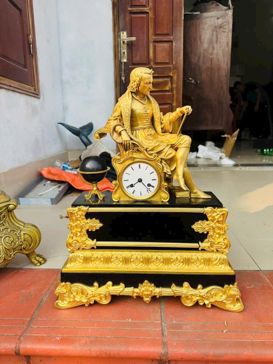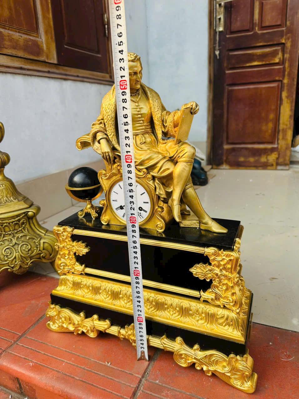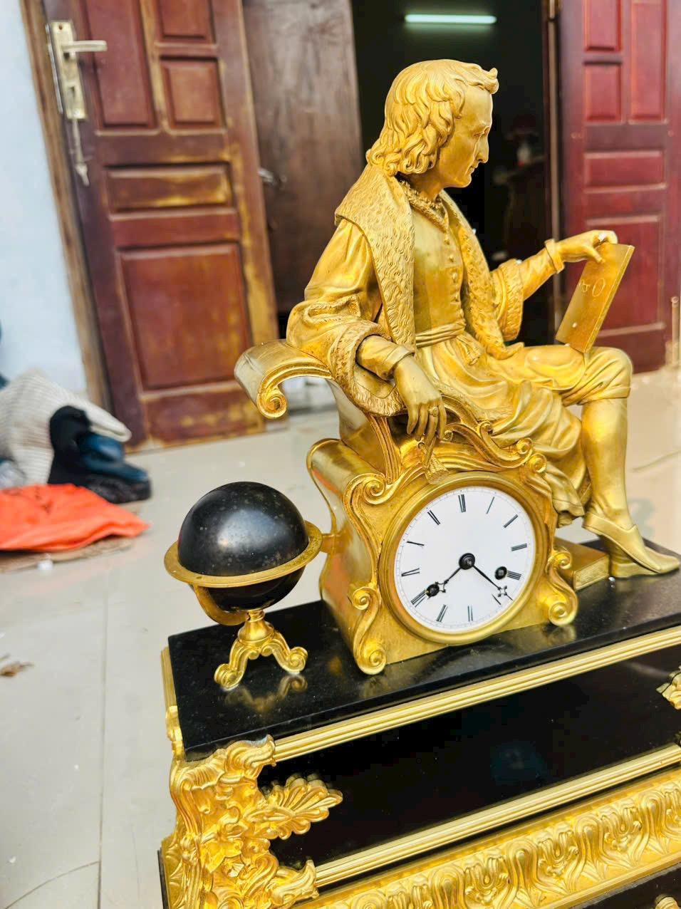 Chất liệu cao cấp: Đồng mạ vàng bền đẹp kết hợp đế đá cẩm thạch đen sang trọng.Tượng nhà khoa học/triết gia ngồi bên quả địa cầu, chạm khắc tinh xảo Call:0333534345