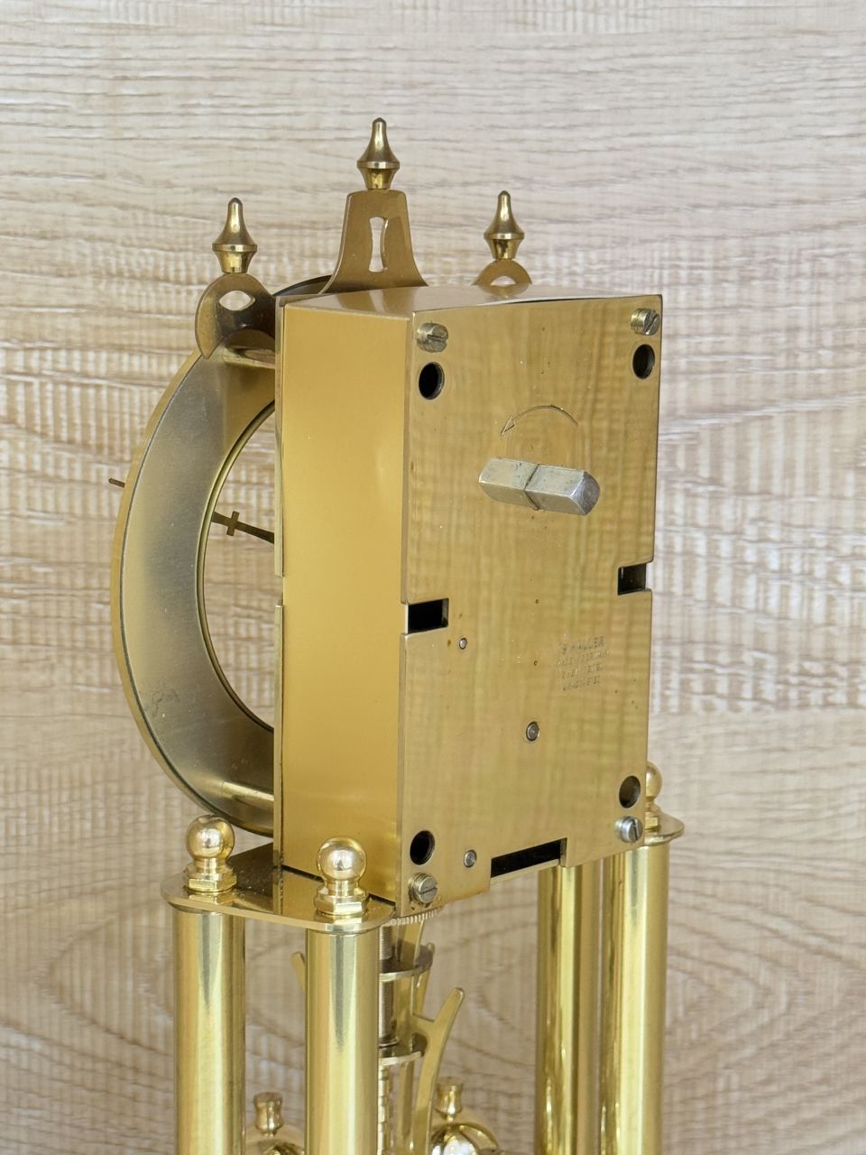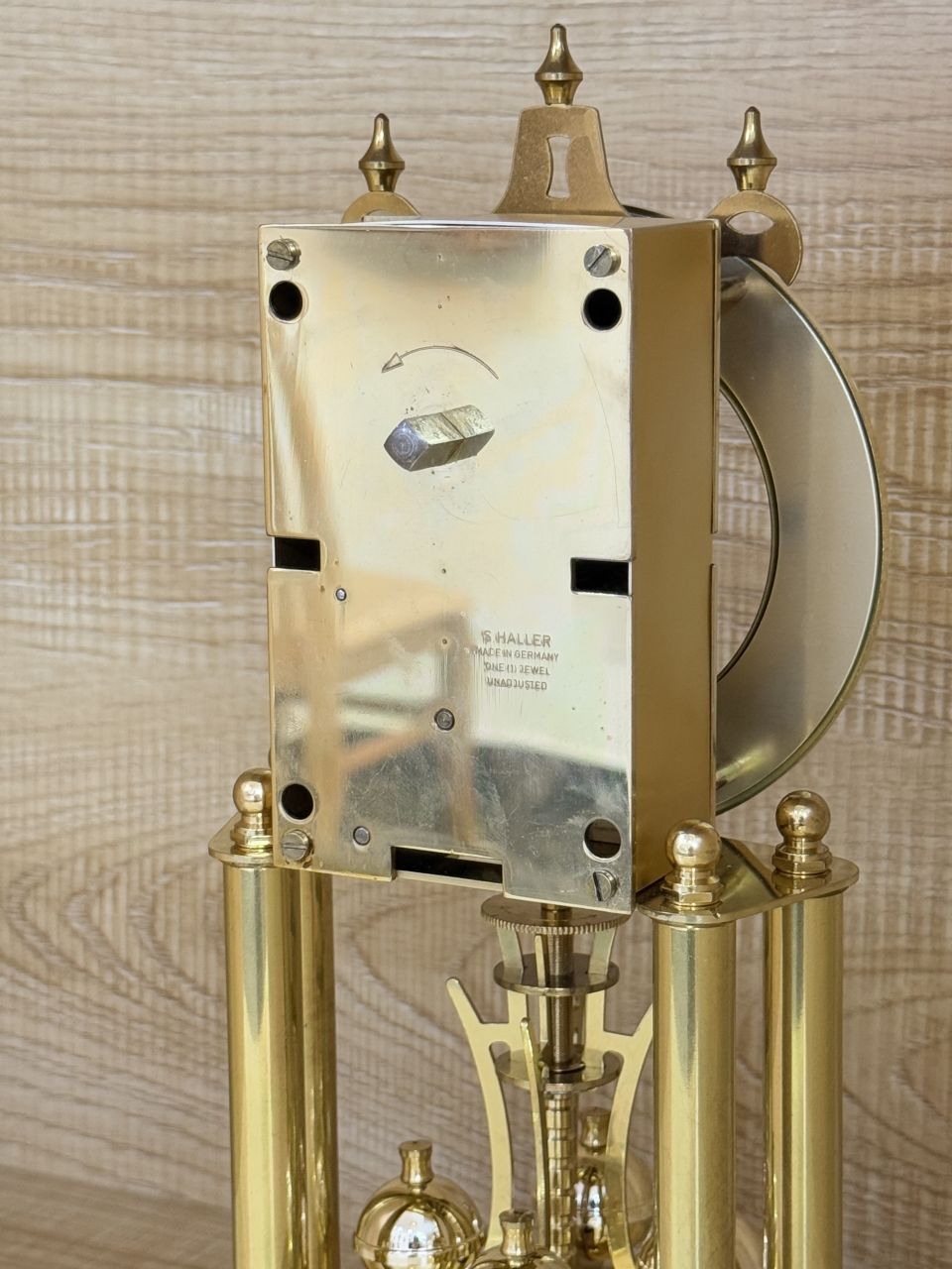 +⃝ Máy : Chính hãng S.HALLER Elgin 1 ổ nén cos, hoạt động bằng dây tóc xoắn (được thiết kế như lò xo nên đảm bảo hoạt động trên mọi bề mặt đứng), quả lắc 4 trái bi mạ crom xoay đảo 2 chiều. Lên dây máy chạy hơn 1 năm mới hết cos.