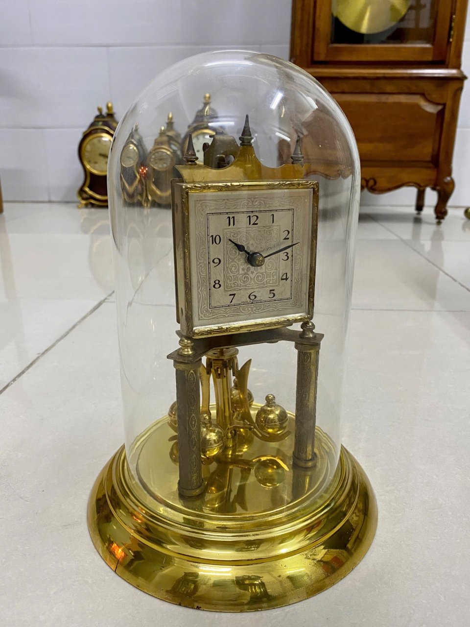 Đồng hồ úp ly Đức cót 400 ngày _Quả lắc đảo 2 chiều sinh độngLên cót 1 lần chạy 400 ngày.C 29cm, N 18cm. Chất liệu: Đồng, úp ly thủy tinhGiá: 2,800